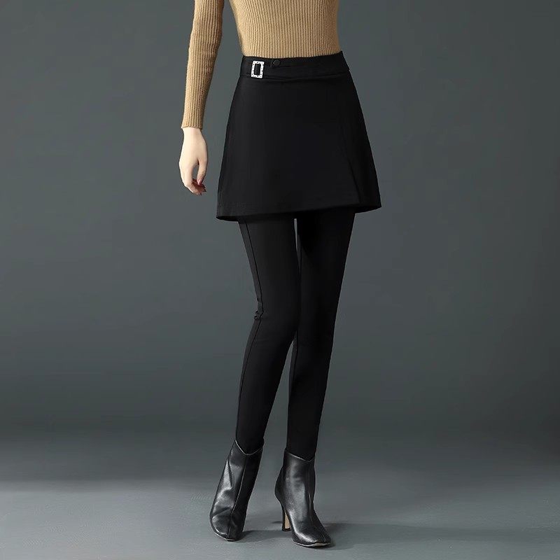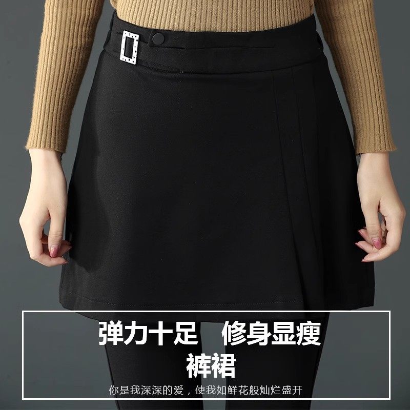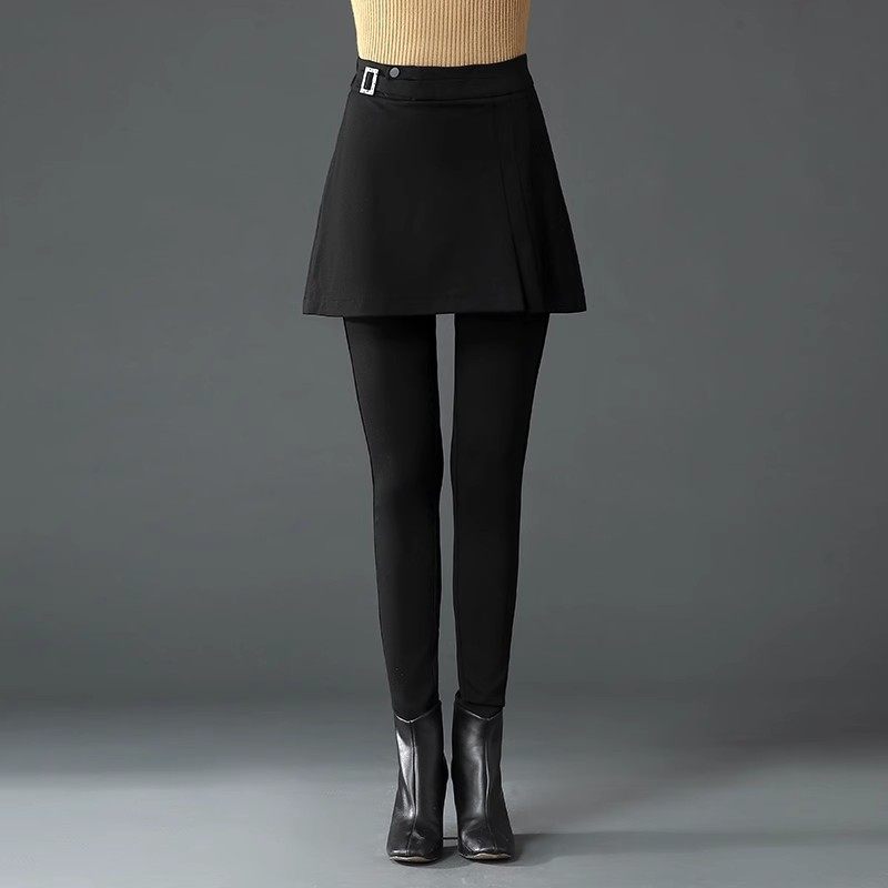 黑色加绒打底裤假两件女秋冬a字裙裤外穿高腰弹力一体绒小脚裤子