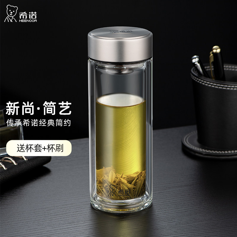 希诺玻璃杯官方正品双层隔热女银离子抗菌水杯男士商务办公泡茶杯
