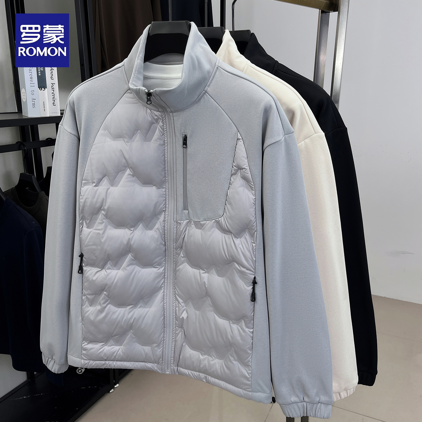 罗蒙2025秋冬季新款男士轻薄羽绒服休闲加厚保暖拼接鸭绒立领外套