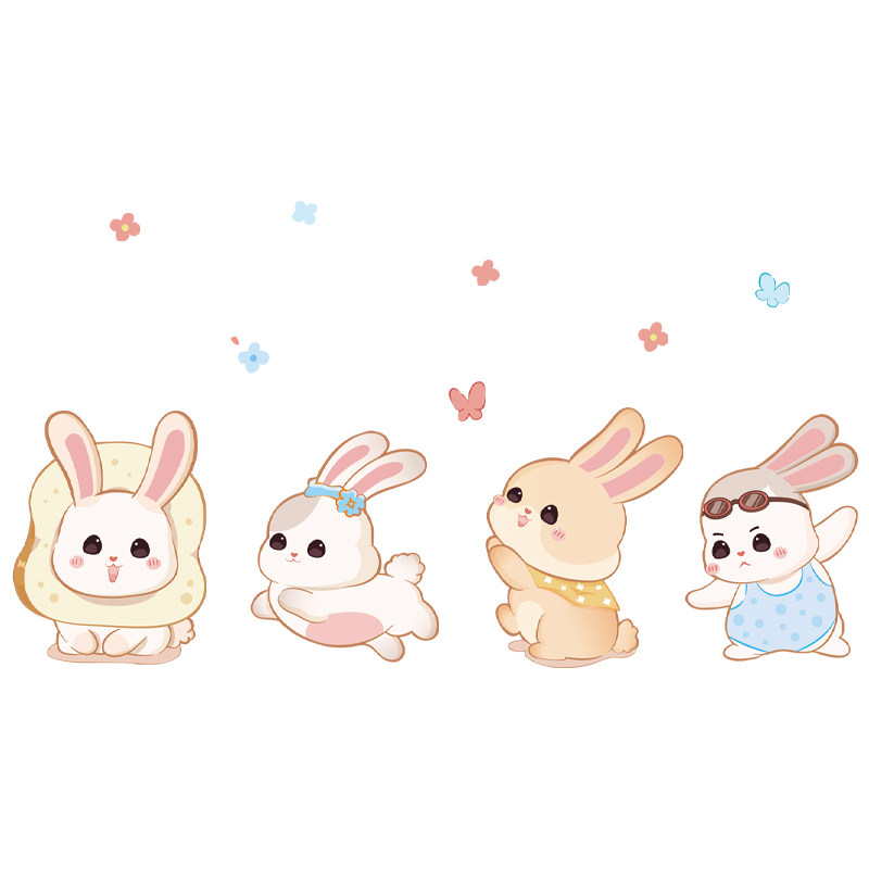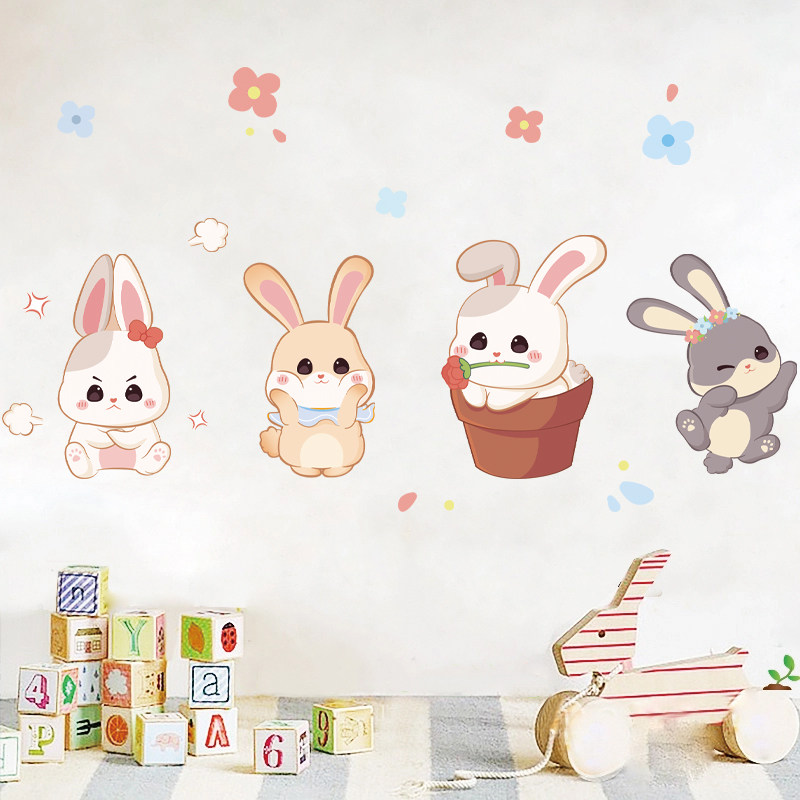 卡通可爱动物墙贴卧室儿童房间装饰兔子贴画防水自粘遮丑补洞贴纸