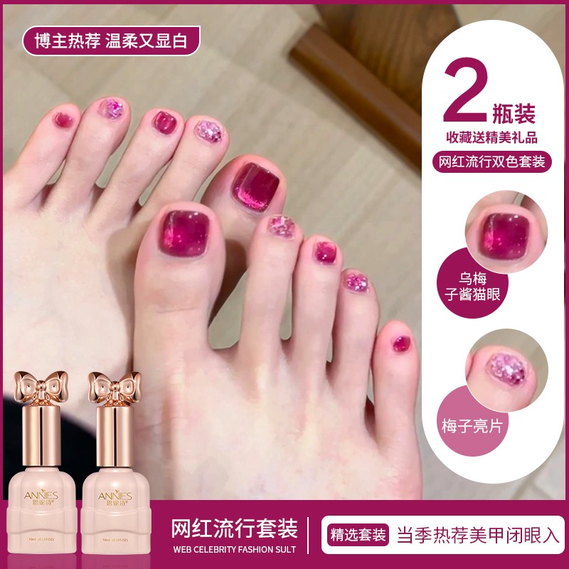 夏日爆闪亮片脚趾指甲油胶2025年新款流行奶白双色套装美甲店专用