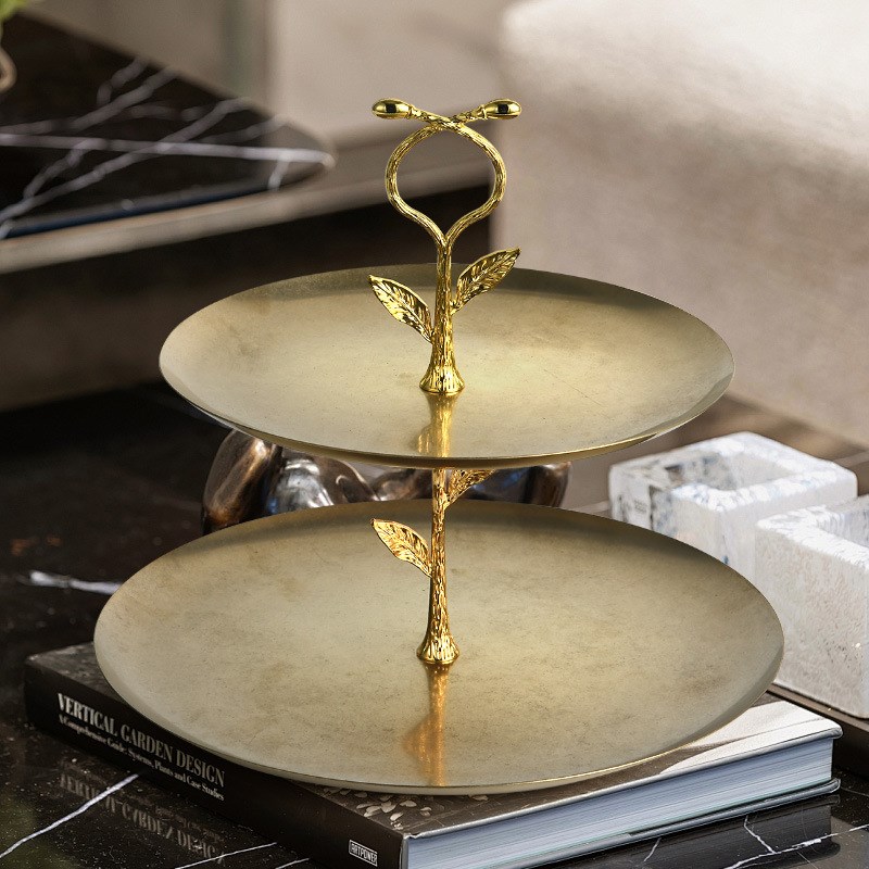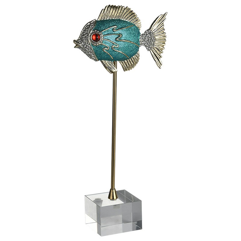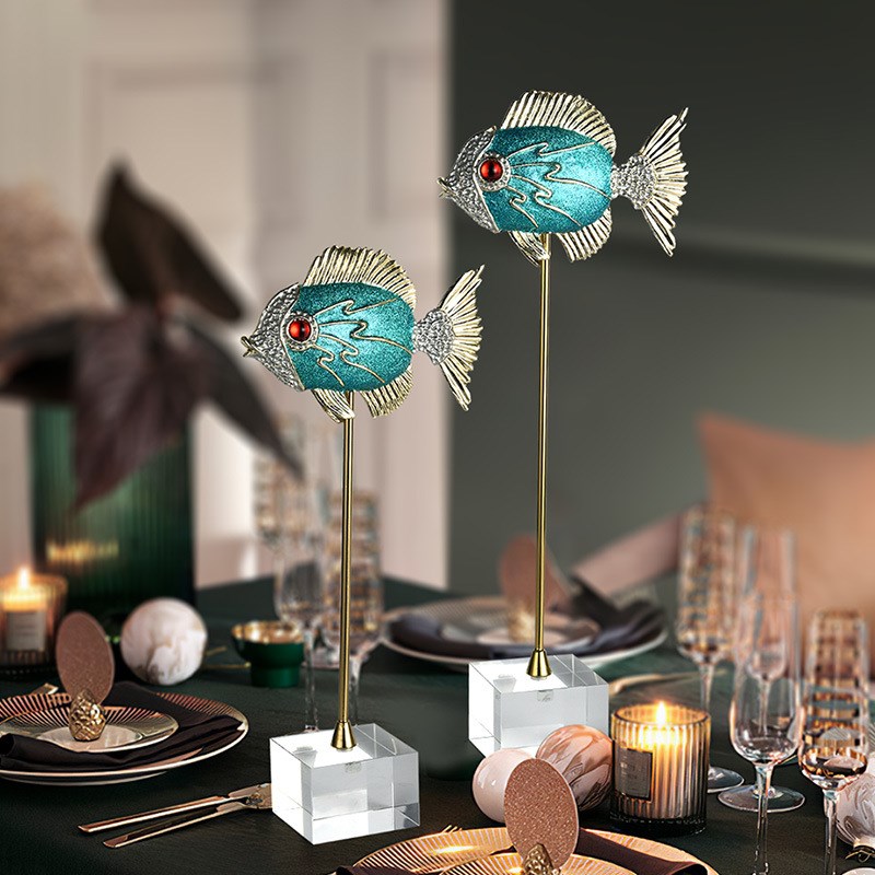 珐琅彩鱼摆件金属圆形双层托盘创意简约家居样板房桌面地球仪装饰
