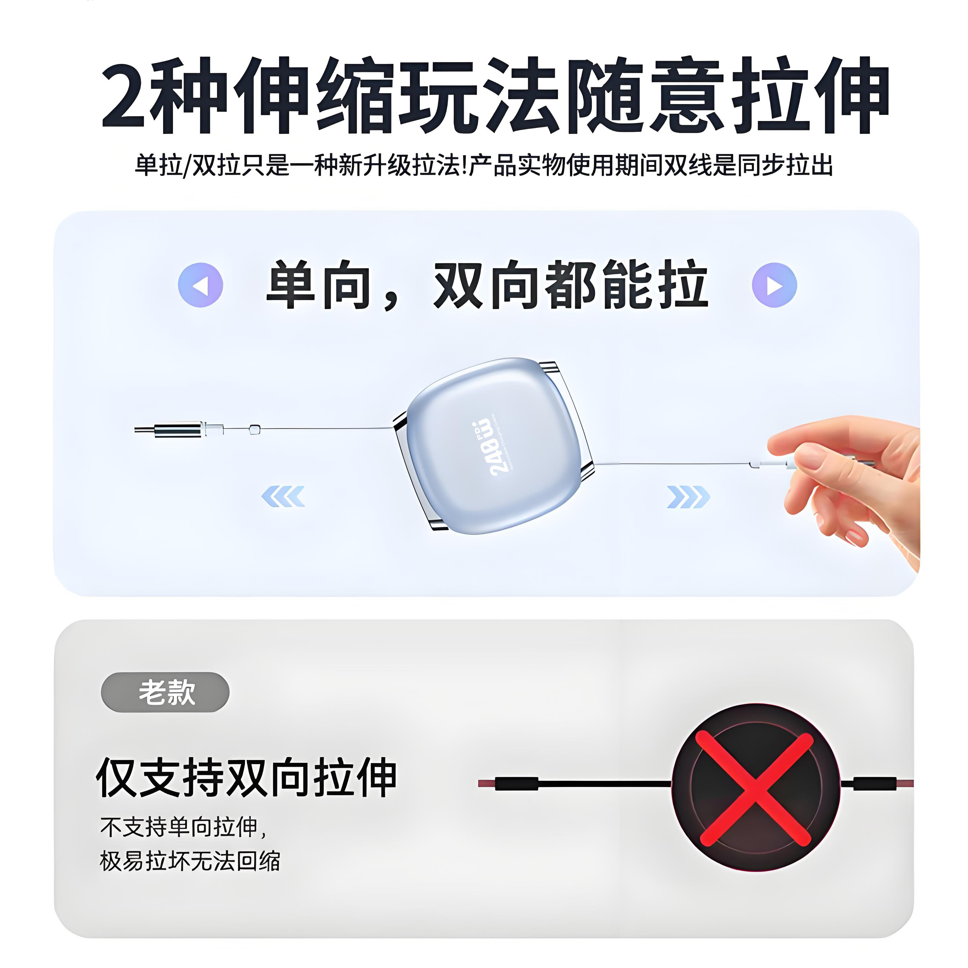 新款240W超级快充数据线伸缩type-c双头适用苹果华为vivo小米oppo安卓手机充电线车载多功能平板笔记本通用