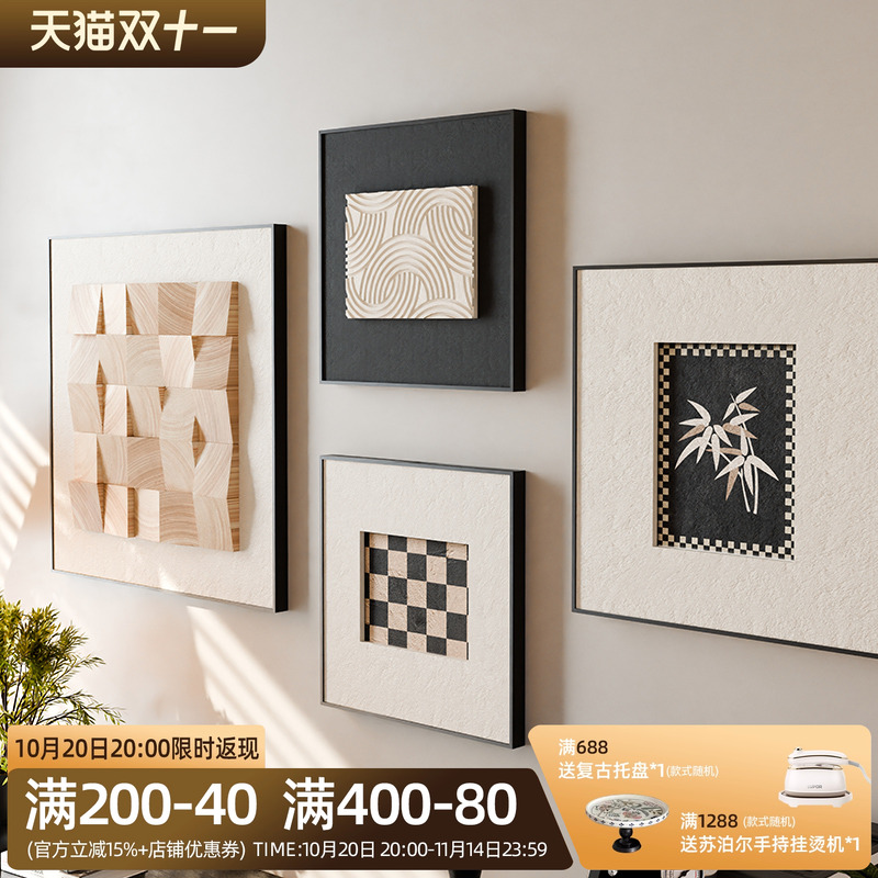 立体砂岩2024新款法式中古风高级感葫芦客厅装饰画沙发背景墙挂画