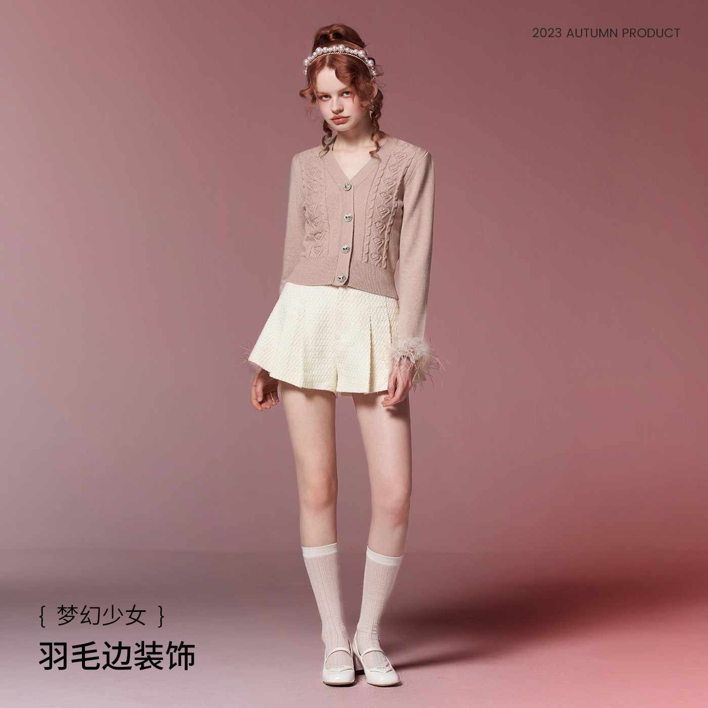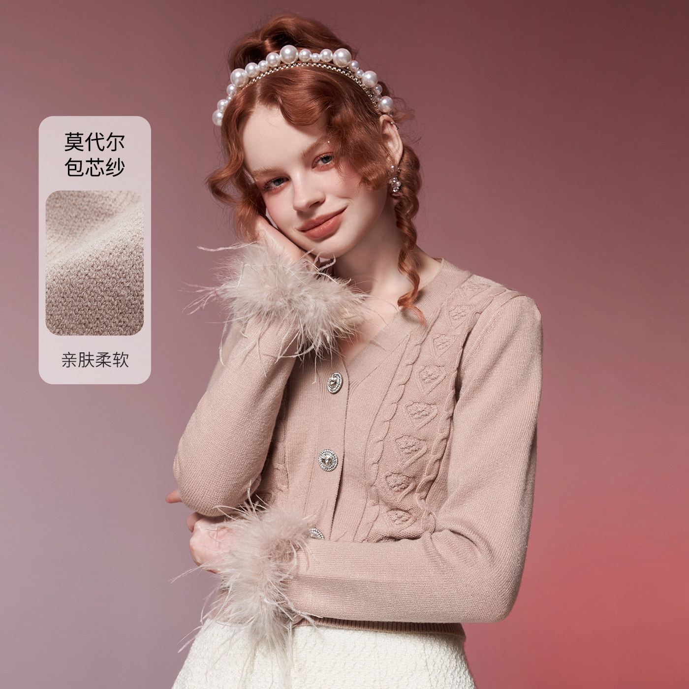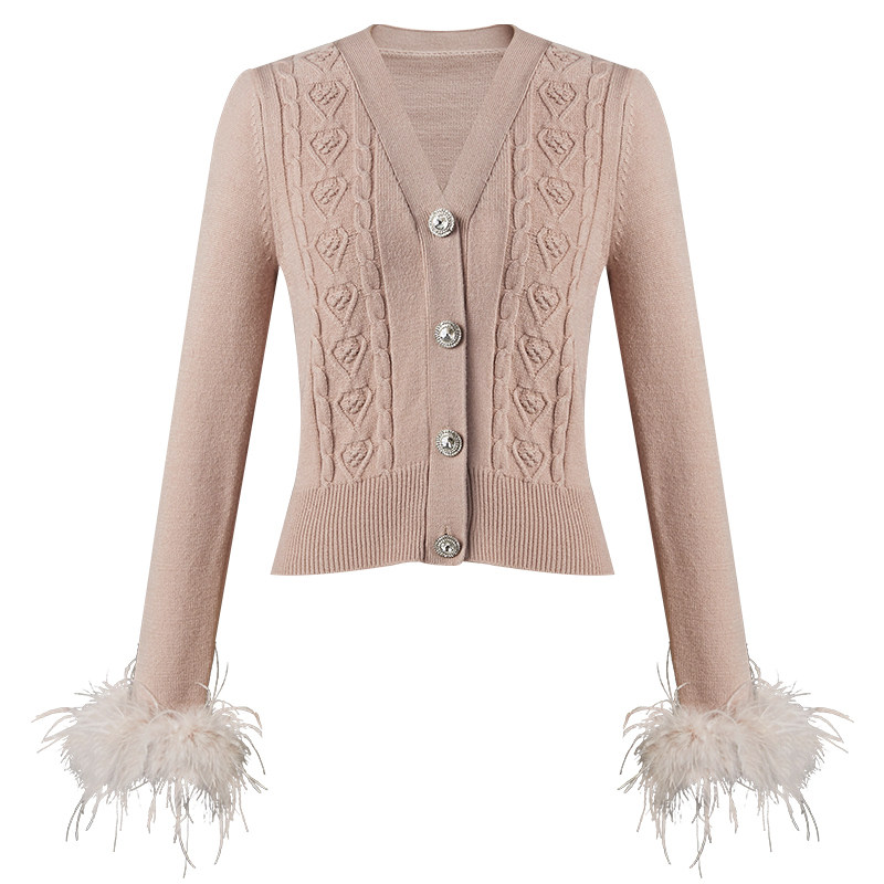 【商场同款】糖力秋季可拆羽毛装饰长袖修身抗起球包芯纱针织衫女
