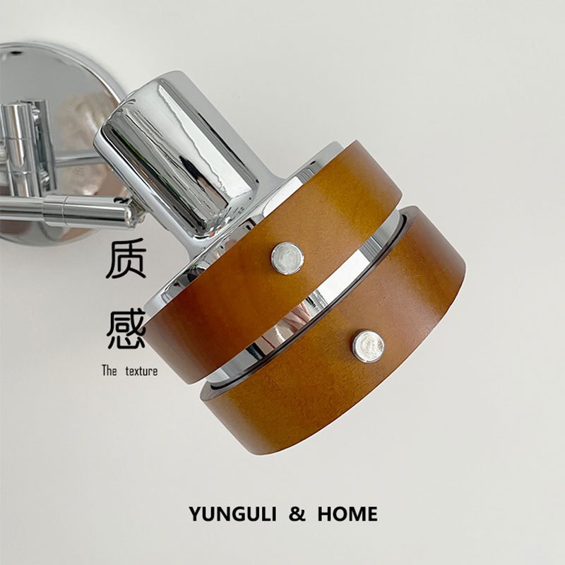 卧室床头灯拉线伸缩摇臂壁灯复古中古实木侘寂风民V宿客房阅读墙