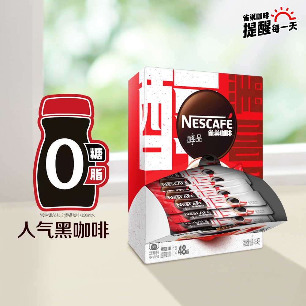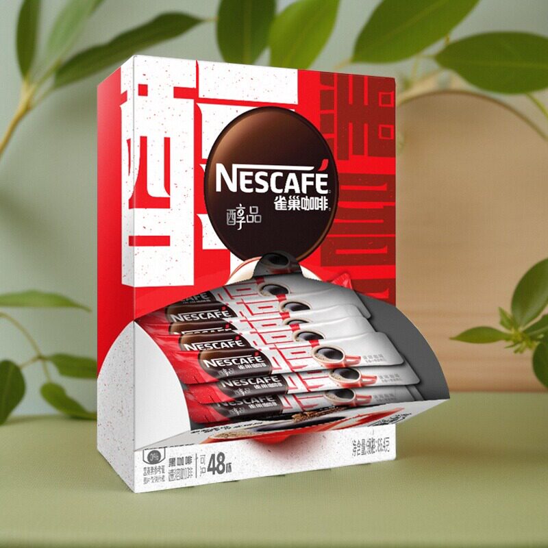 雀巢咖啡100条装雀巢黑咖啡醇品无蔗糖无奶速溶咖啡黑咖啡粉盒装