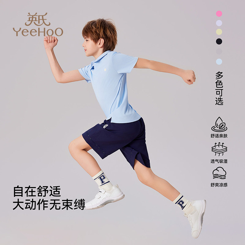 英氏男童运动POLO衫2026夏季新款儿童短袖T恤大童休闲运动上衣潮