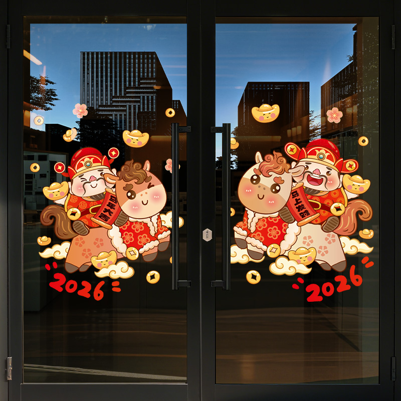 2026马年新年装饰玻璃橱窗贴UV静电贴纸店铺元旦过年氛围布置窗花