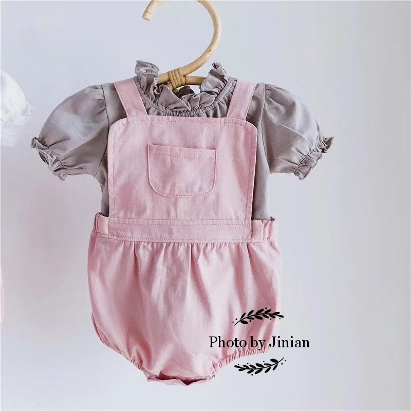 新款韩代夏季爬服哈衣短袖纯色T恤女宝宝背带裤子套装韩版爆款