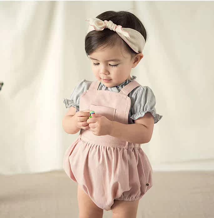 爬服短袖纯色女宝宝裤子韩版哈衣