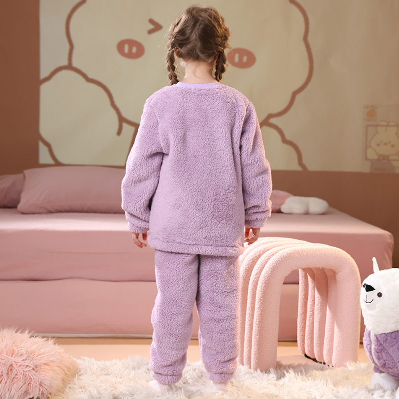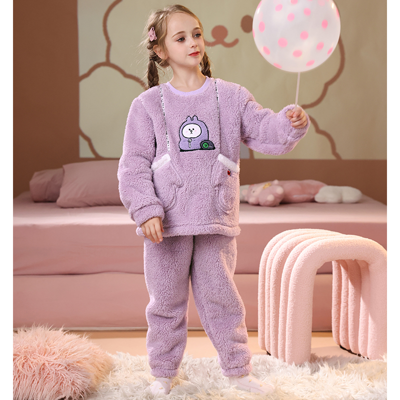 芬腾布朗熊女童睡衣秋冬珊瑚绒抗静电套装女孩儿童加绒加厚家居服