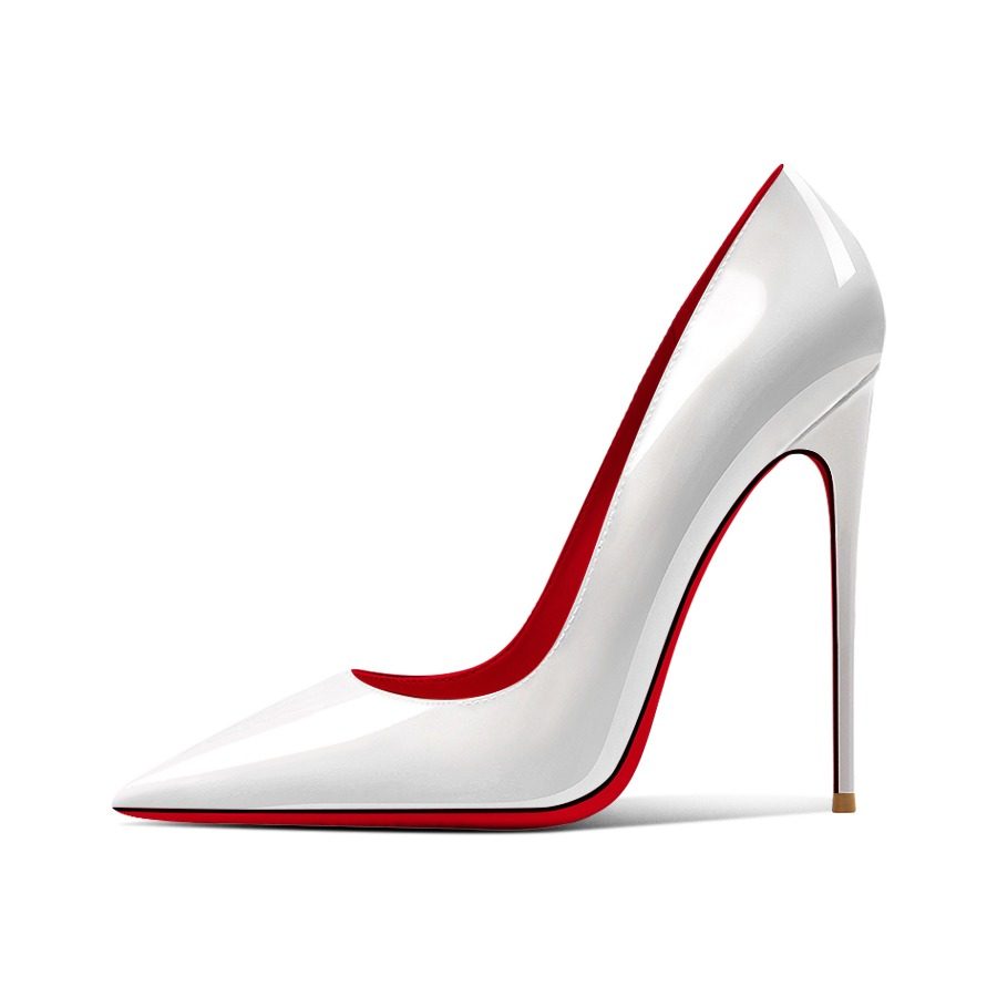 2025新款12cm黑色高跟鞋女斩男细跟尖头性感职业白色红底浅口单鞋