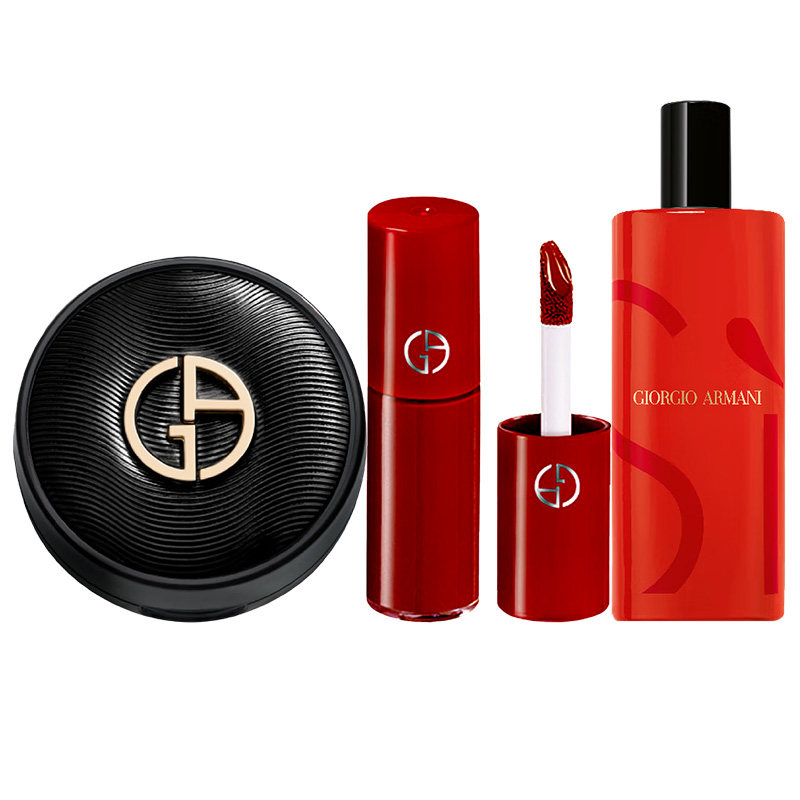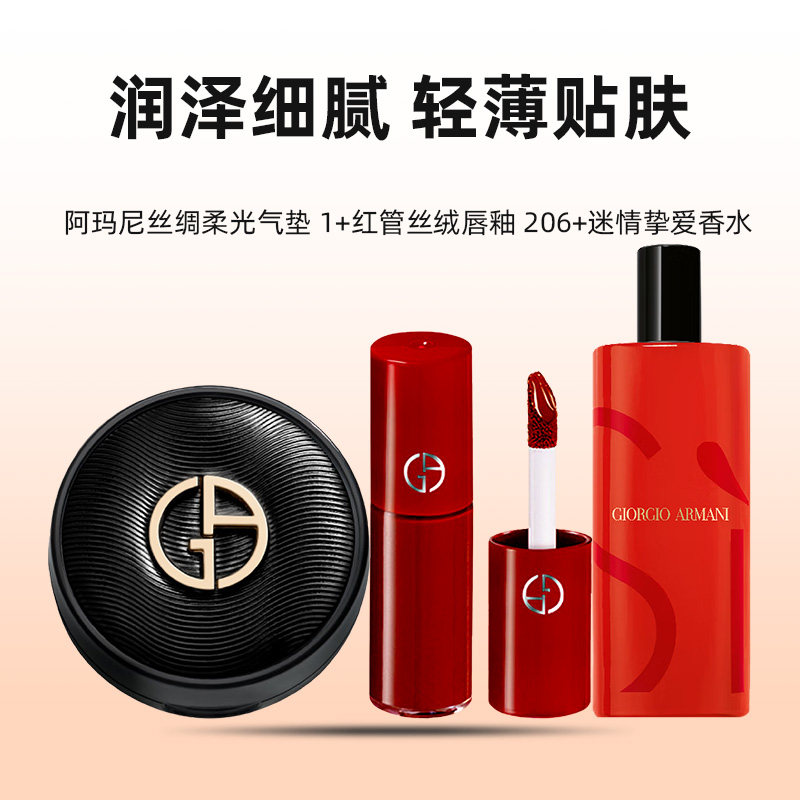 【自营】GIORGIO ARMANI/阿玛尼丝绸柔光气垫香水红管唇釉组合装