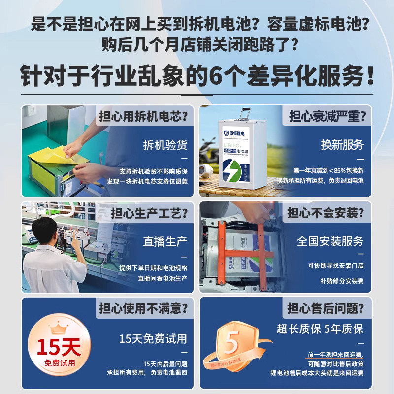 顶恒电动车锂电池磷酸铁锂电池48V60V72V两轮专用三轮电瓶车定制