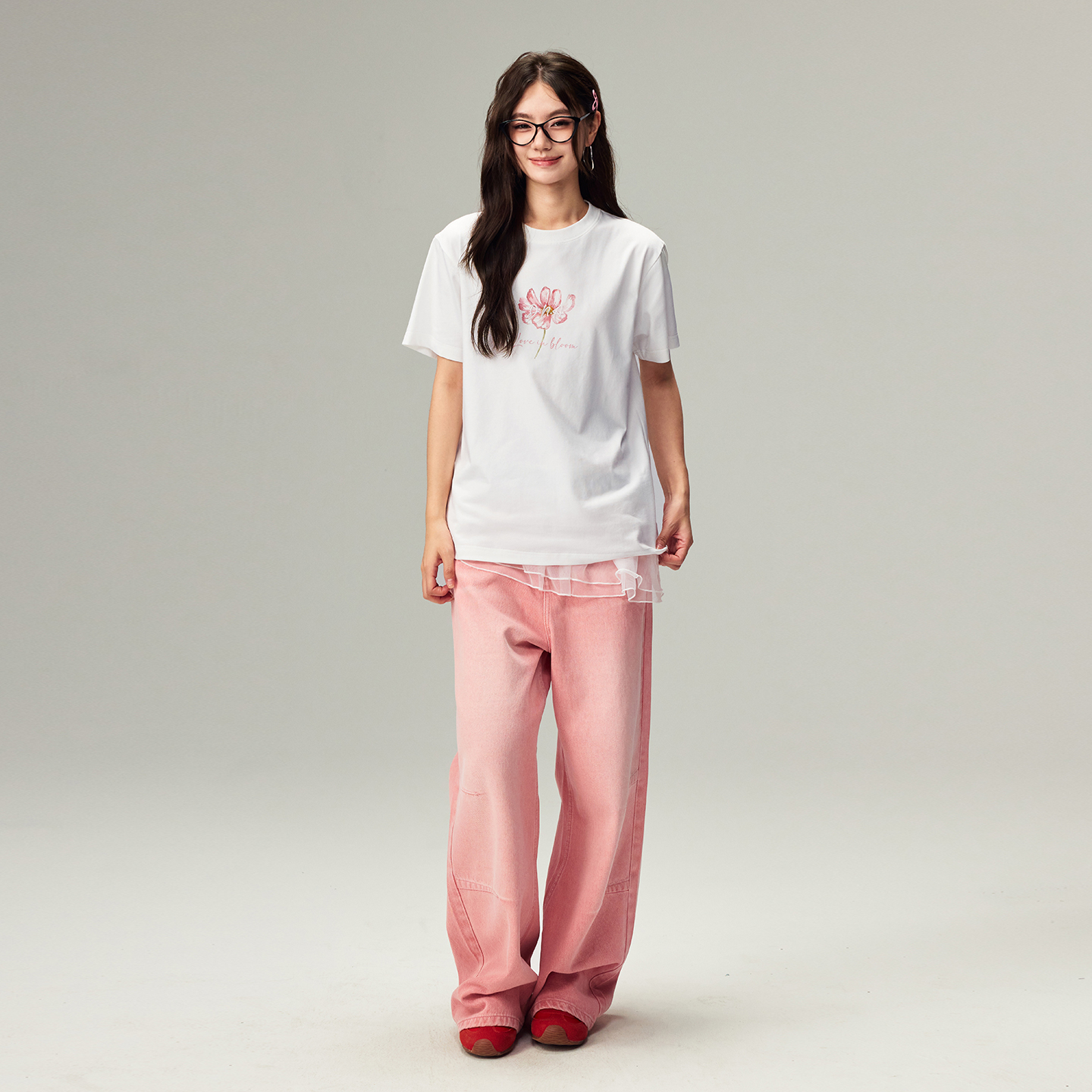 【DNA官方】小花刺绣印花短袖T恤2025年夏季百搭休闲宽松上衣女