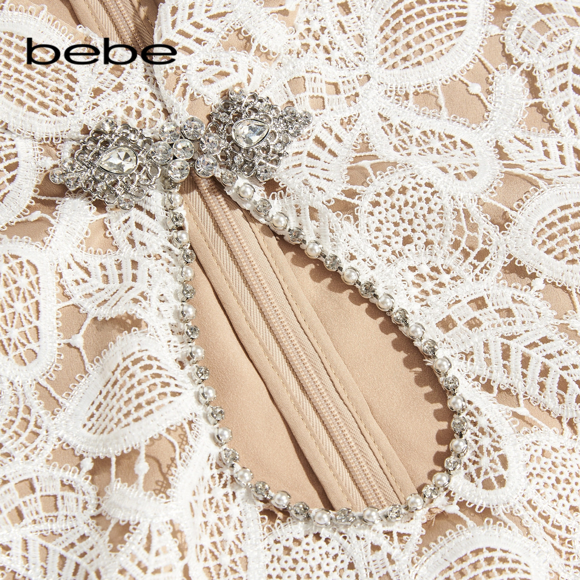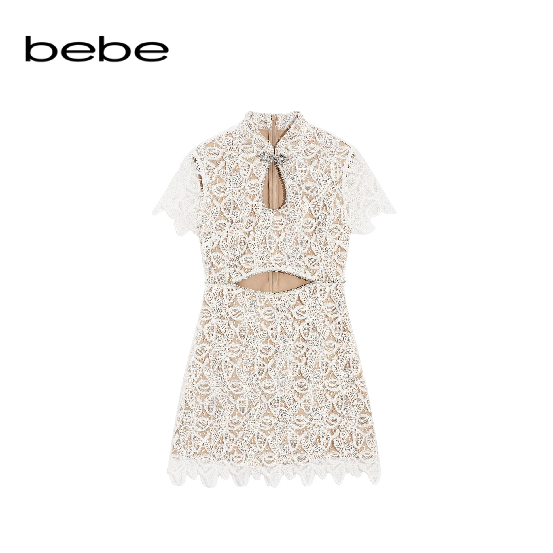 bebe秋季新款挖洞蕾丝连衣裙