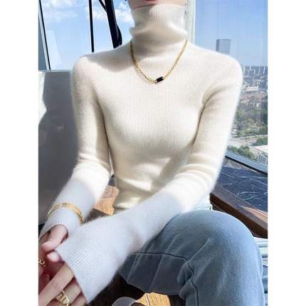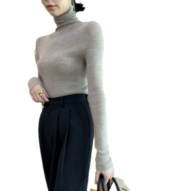 洋气时髦半高领针织衫女秋冬上衣打底修身长袖显瘦中领内搭毛衣女
