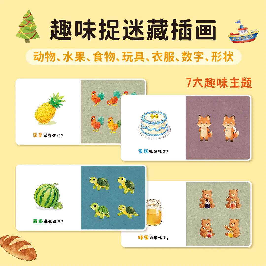 宝宝脑力训练捉迷藏全套7册1-3岁宝宝专注力提升逻辑训练和推理图画书水果食物形状衣服数字动物玩具七大趣味主题彩图早教益智绘本