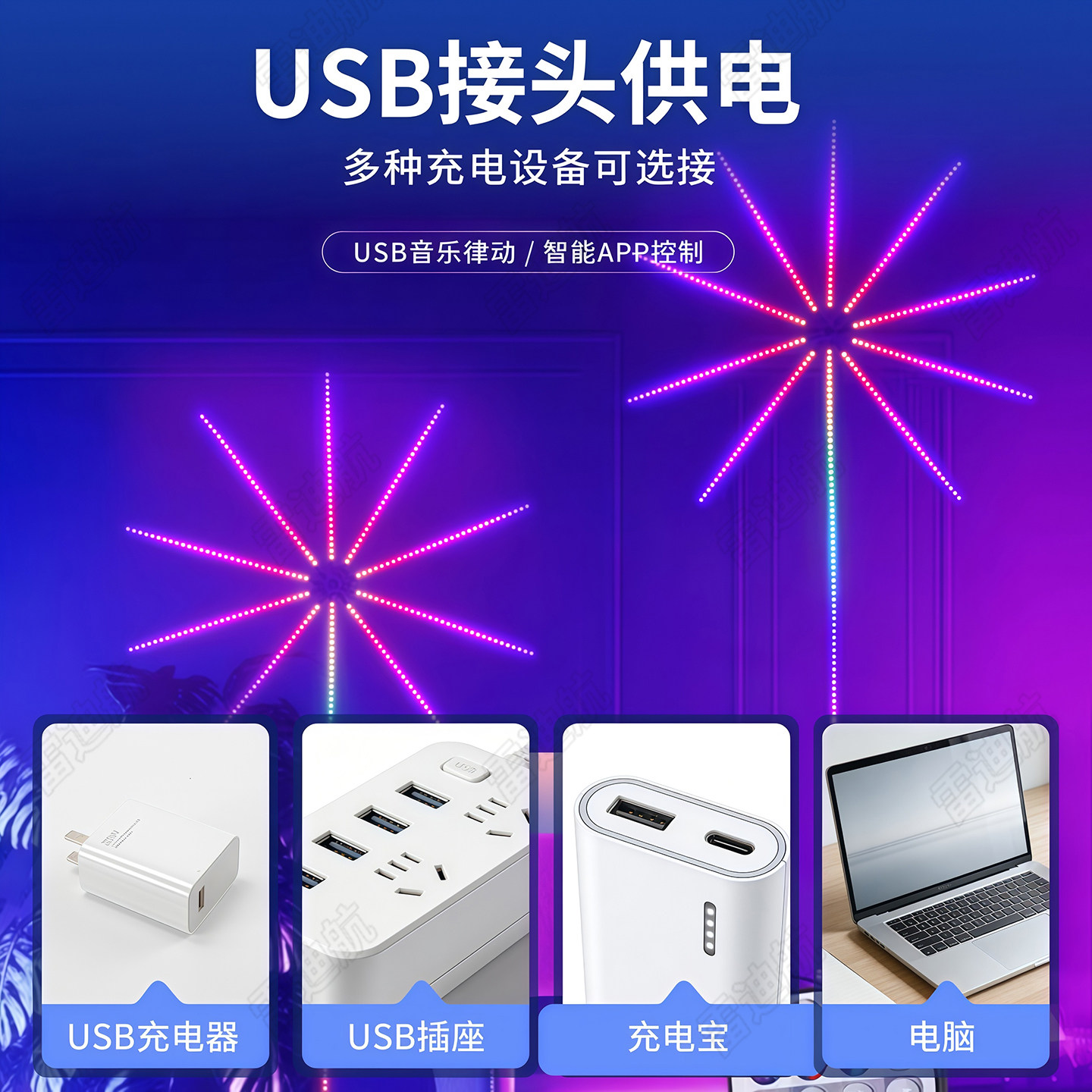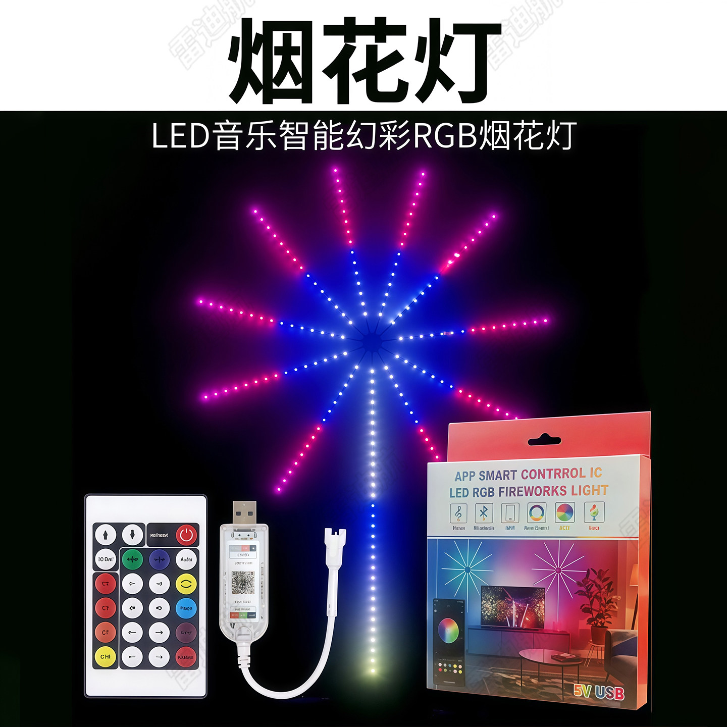 led幻彩烟花灯5v炫彩灯带USB流水跑马灯蓝牙室内装饰灯声控律动灯