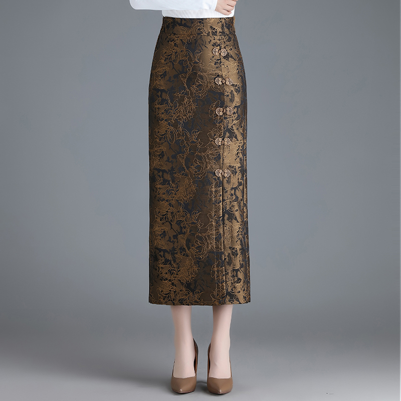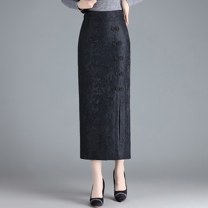 复古盘扣筒裙开叉一步裙2025春秋女新款优雅修身包臀半身裙中长裙