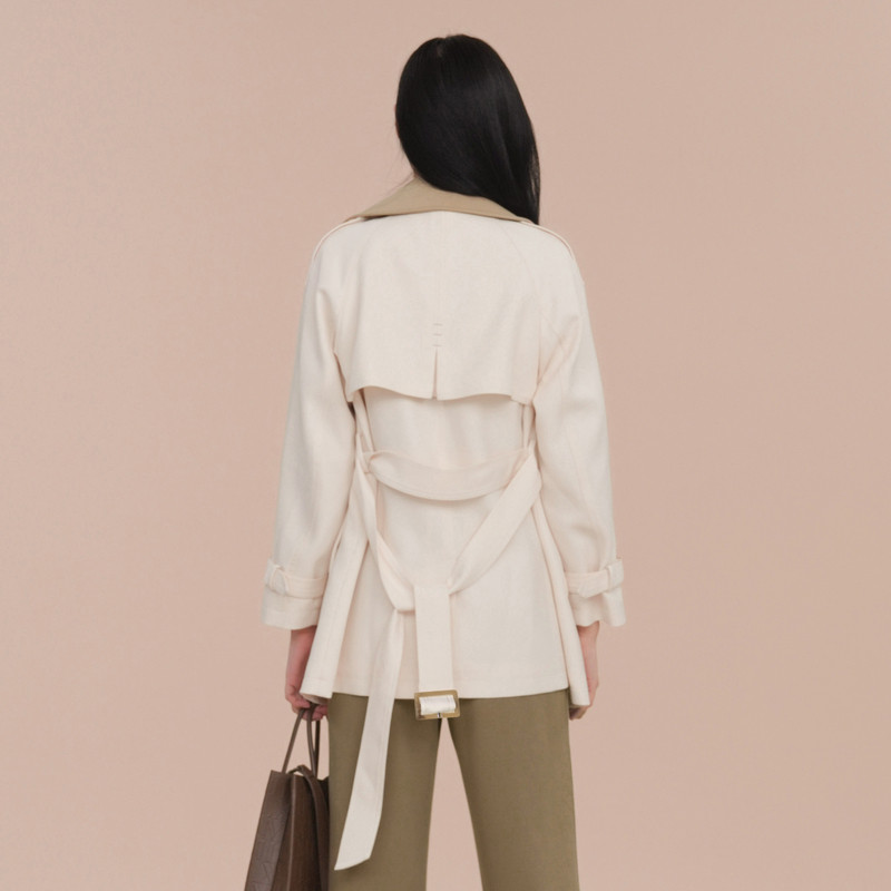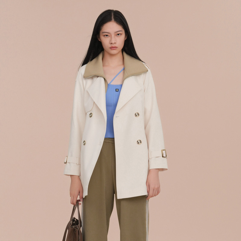 XG雪歌中长款双排扣休闲风衣2025春季新款白色通勤简约长袖外套女