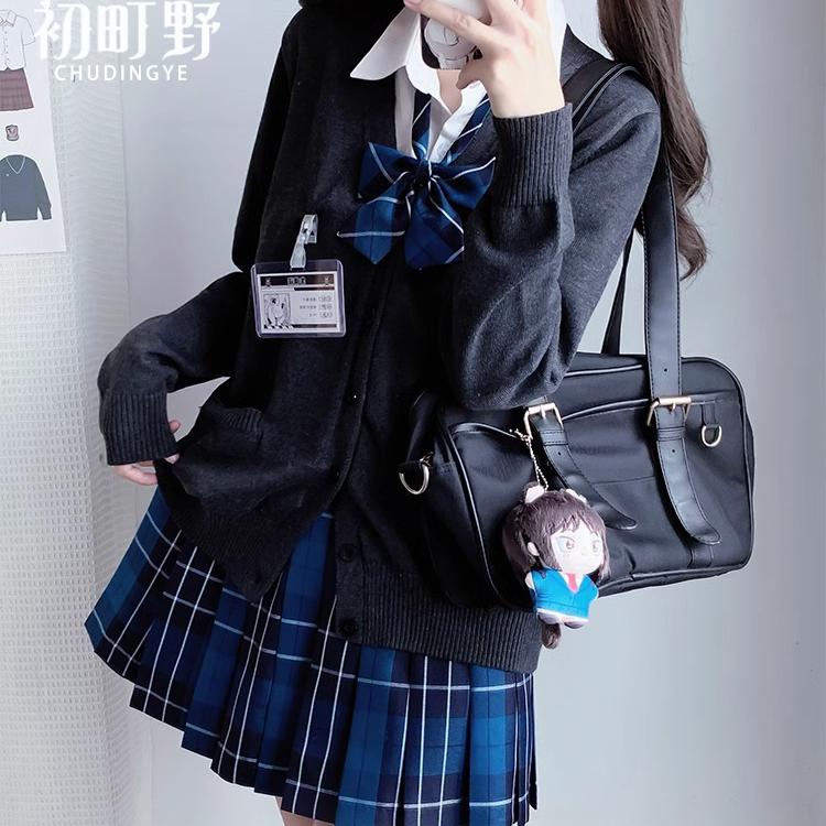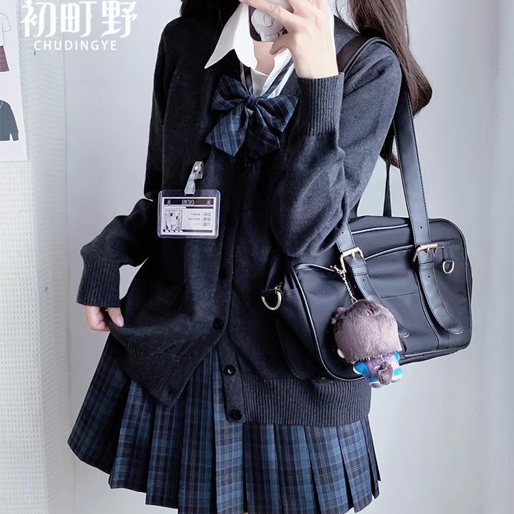 JK制服套装女秋冬季日系学院风针织开衫毛衣外套百褶格裙纯色原创