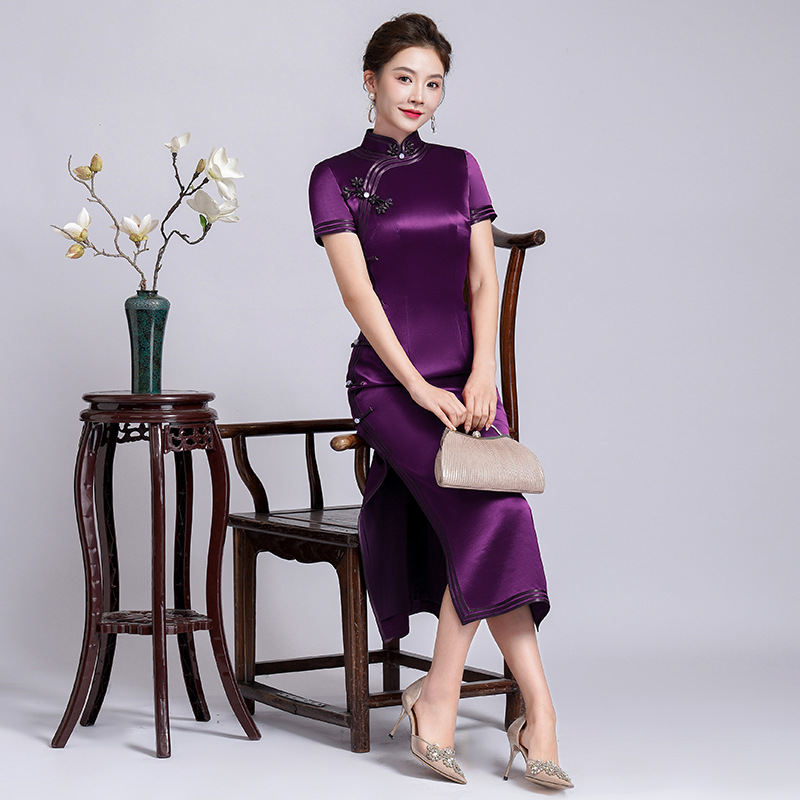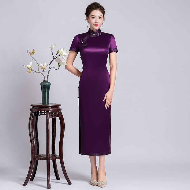 妈妈婚宴装礼服女 春夏季2023新款高贵喜婆婆结婚旗袍大码旗袍裙