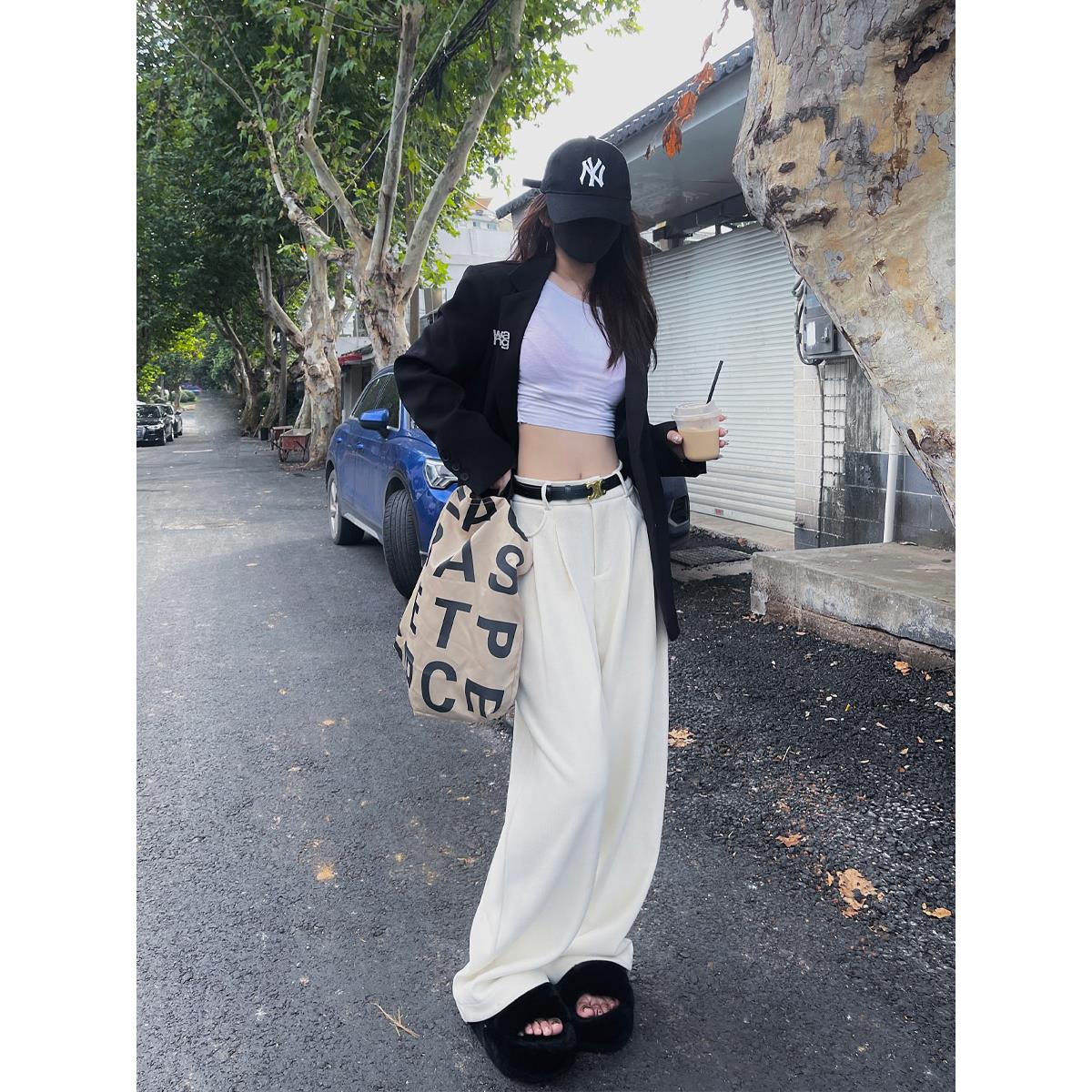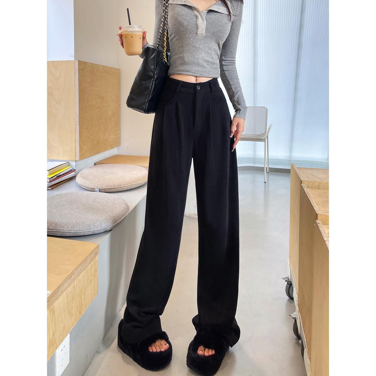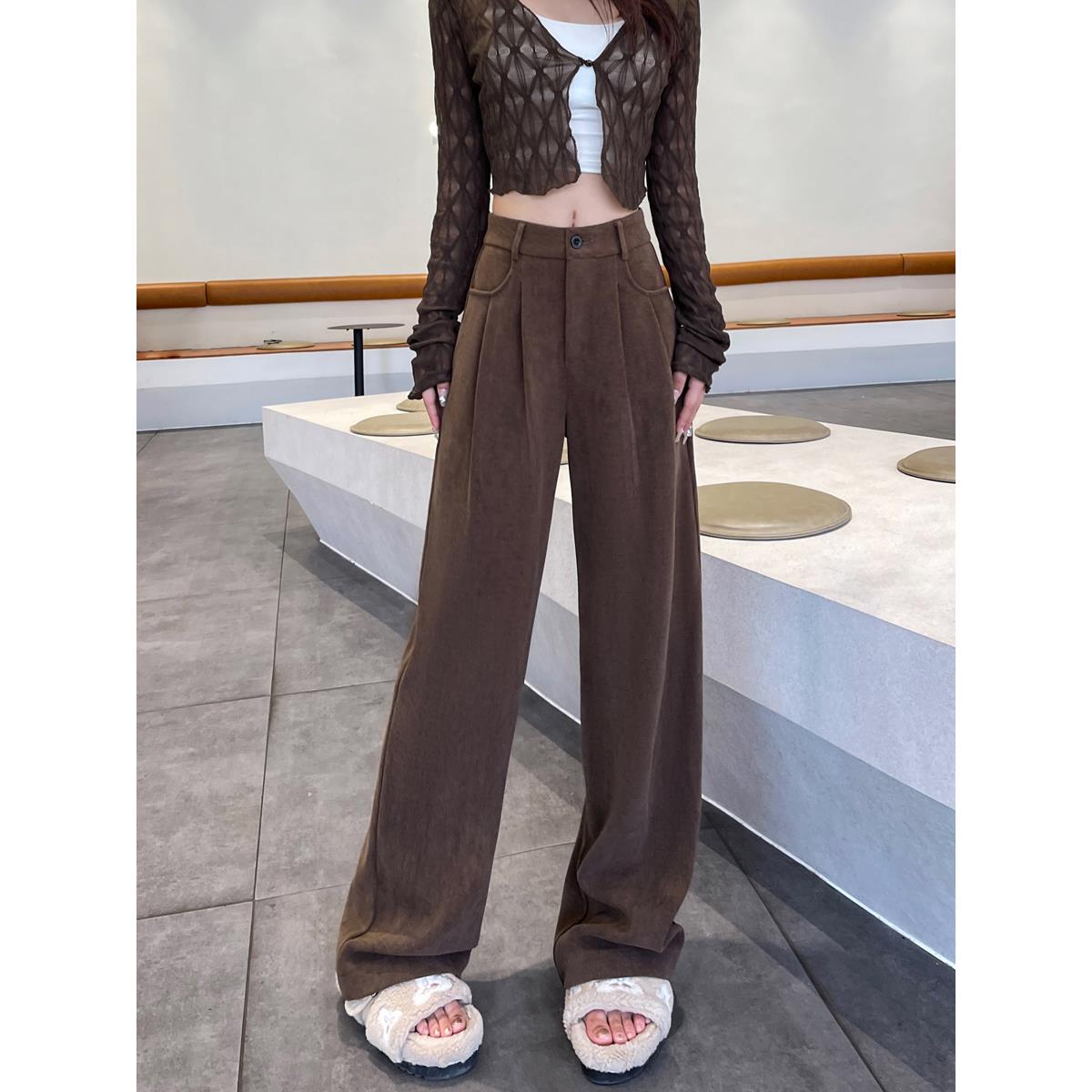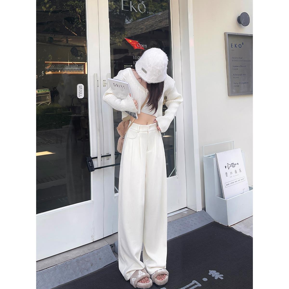 白色裤子女秋冬季2025针织加绒雪尼尔阔腿裤灯芯绒休闲西装裤大码