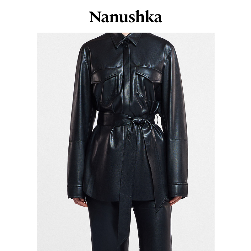 【甄选折扣】NANUSHKA ARTHA 女士OKOBOR™素皮高级感绑带衬衫