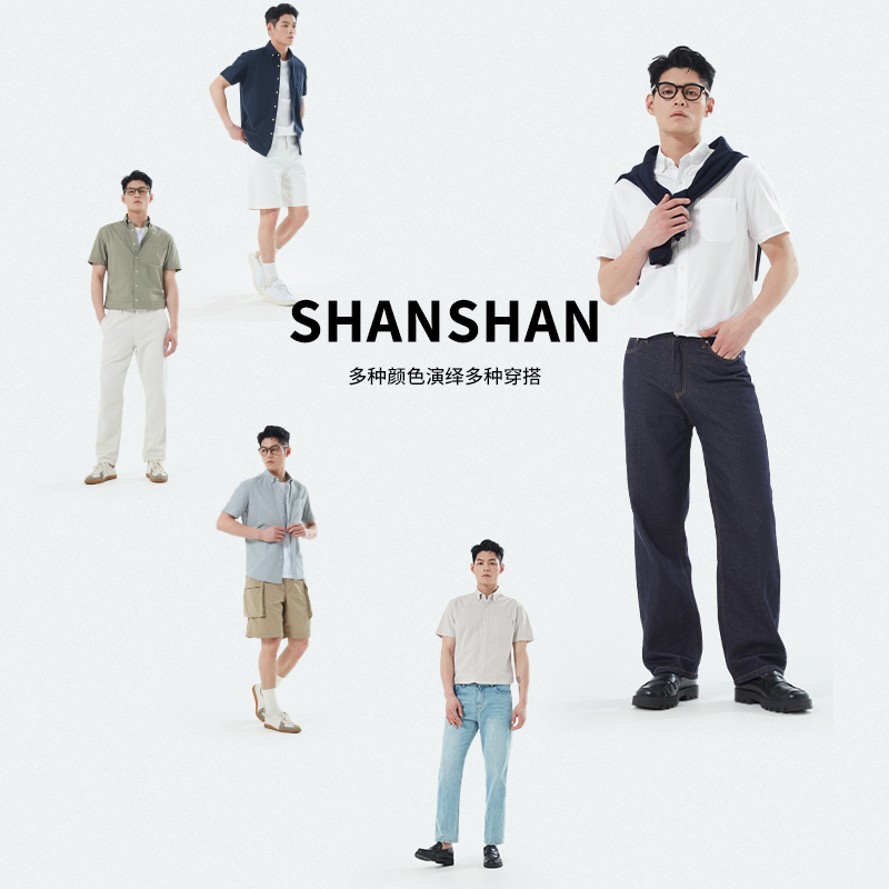 杉杉奥莱纯棉牛津纺短袖衬衫男2025夏季新款商务易打理白衬衣男士