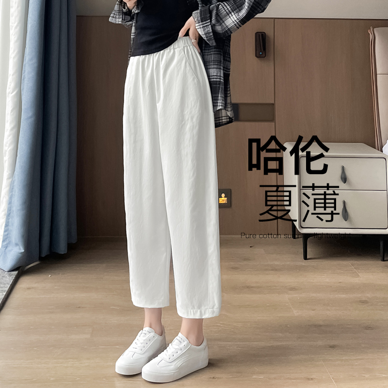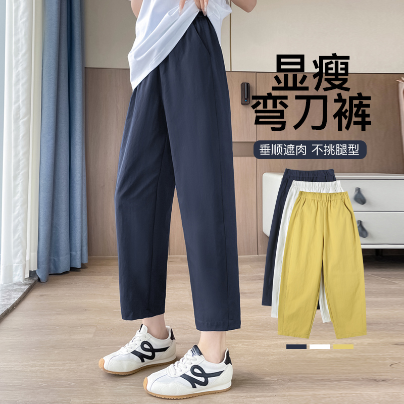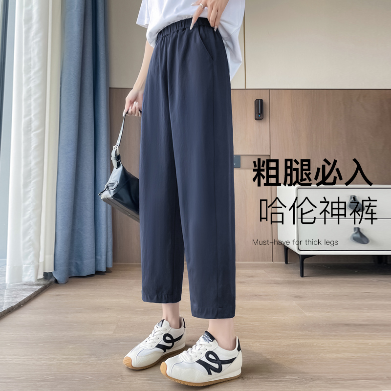 冰丝运动裤女夏季薄款2025高腰宽松休闲直筒小个子九分哈伦萝卜裤