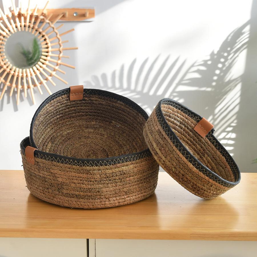 家用桌面藤编水果篮厨房收纳筐日式果盘客厅杂物茶几零食筐收纳筐