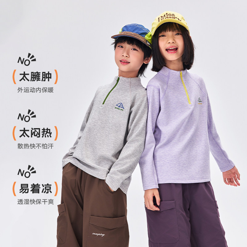 【糯糯轻暖衣】EBAER儿童运动上衣2025秋冬新款男女童加绒打底衫