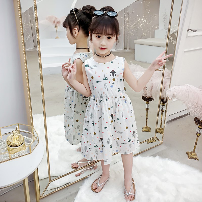 女童连衣裙2025新款夏装碎花背心裙洋气女孩淑女印花无袖棉布裙子
