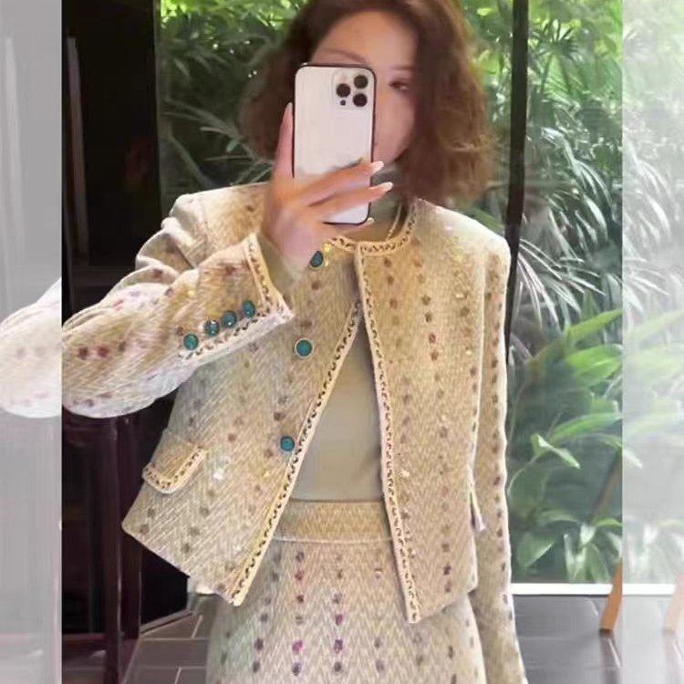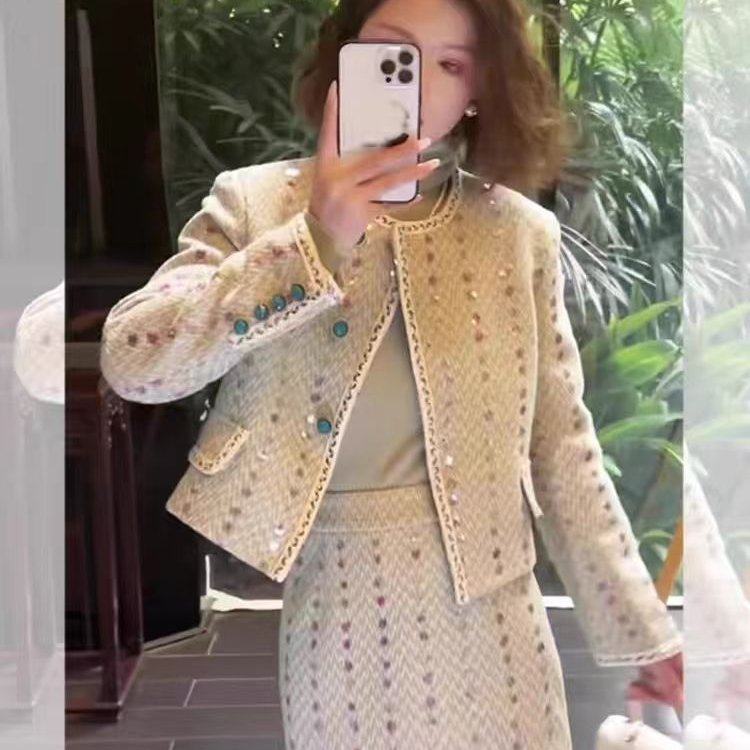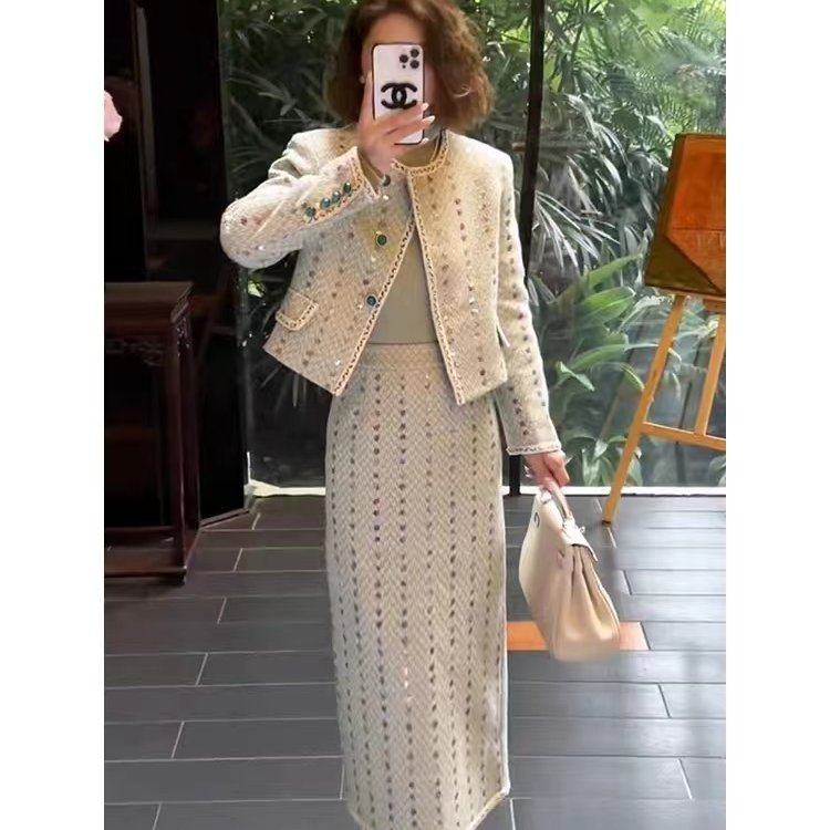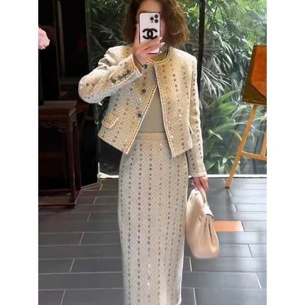 新款小香风套装女长裙时尚洋气高级感名媛气质裙子两件套
