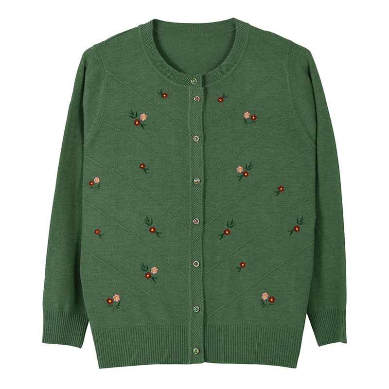 妈妈秋装毛衣开衫薄款圆领长袖