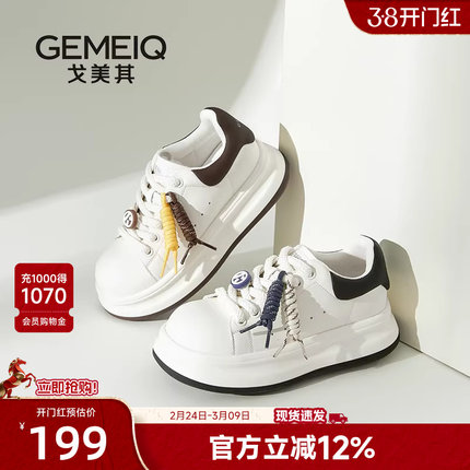 戈美其商场同款厚底小白鞋女款2025新款百搭配裙子轻便软底运动鞋