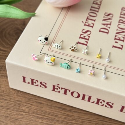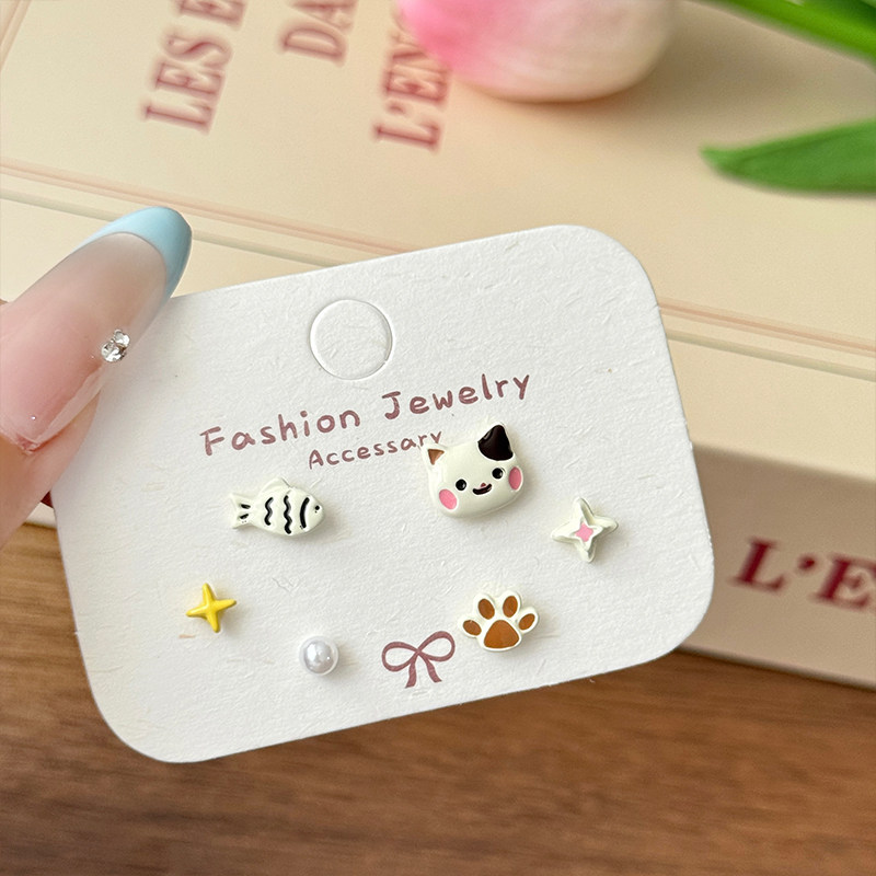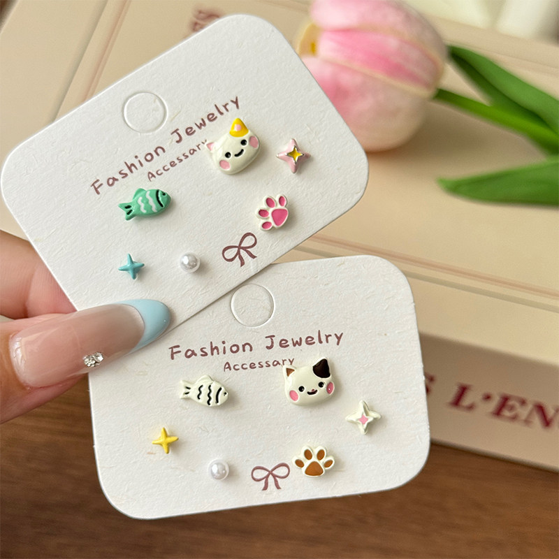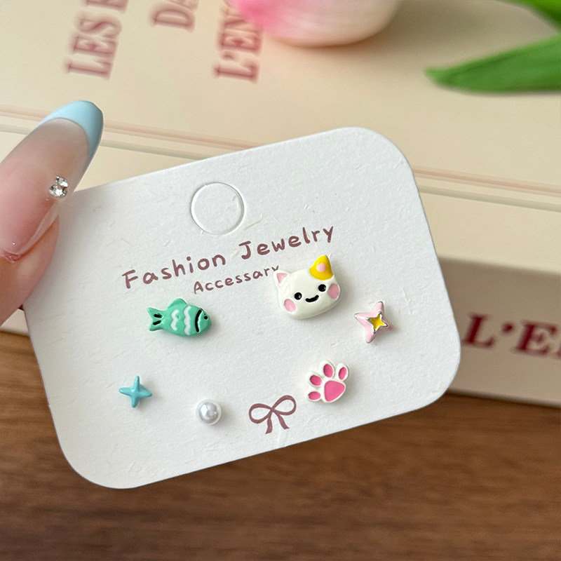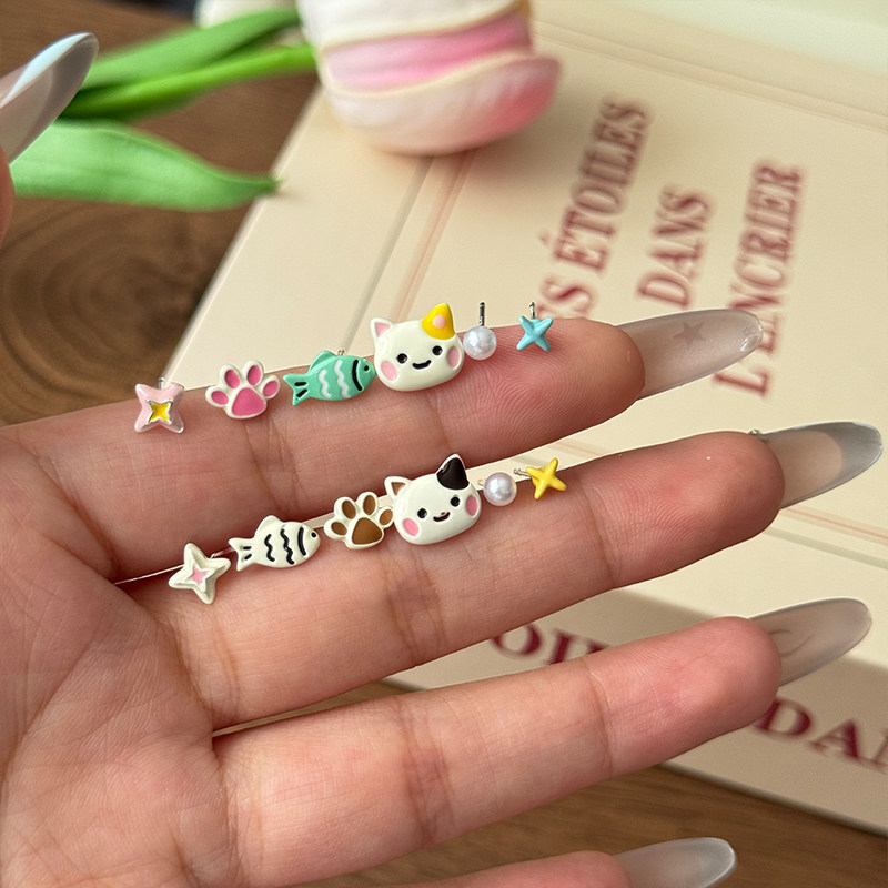 猫咪鲷鱼烧耳钉女小众设计感小巧搞怪可爱卡通猫爪小鱼耳环耳饰