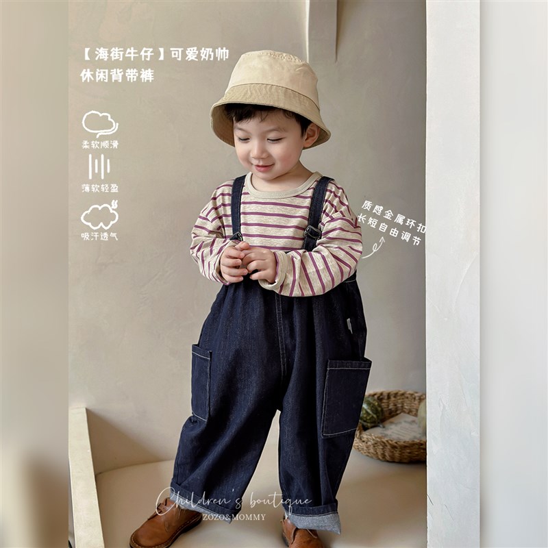 左悠【海街牛仔】可爱奶帅休y闲背带裤牛仔长裤春季婴幼童男女宝