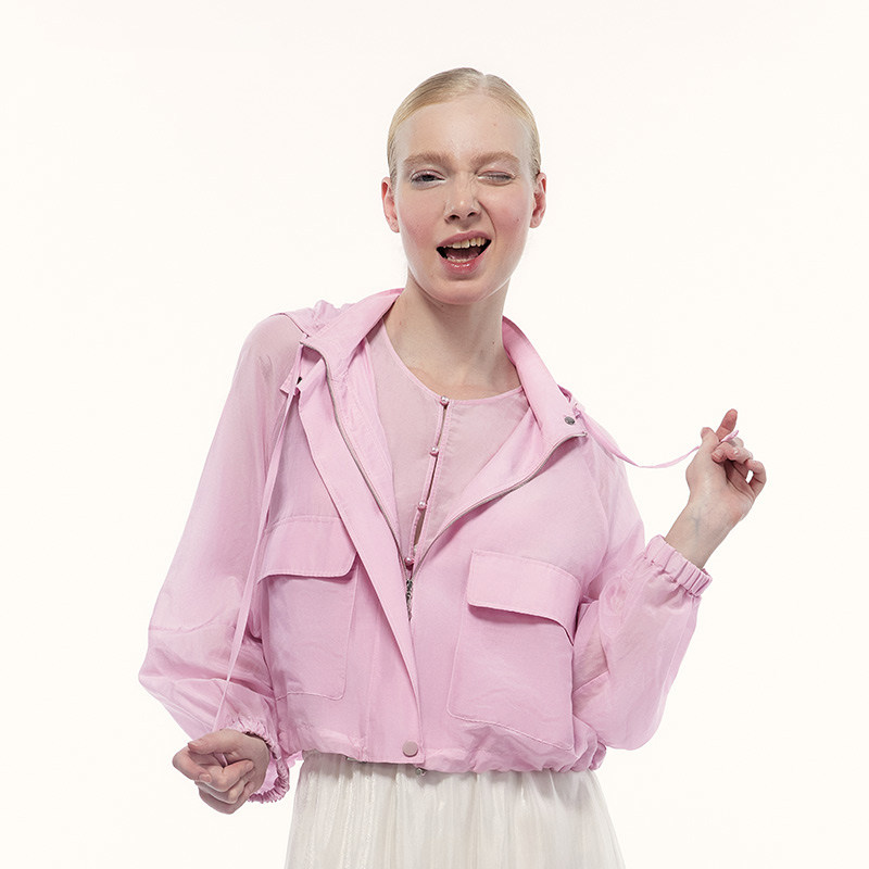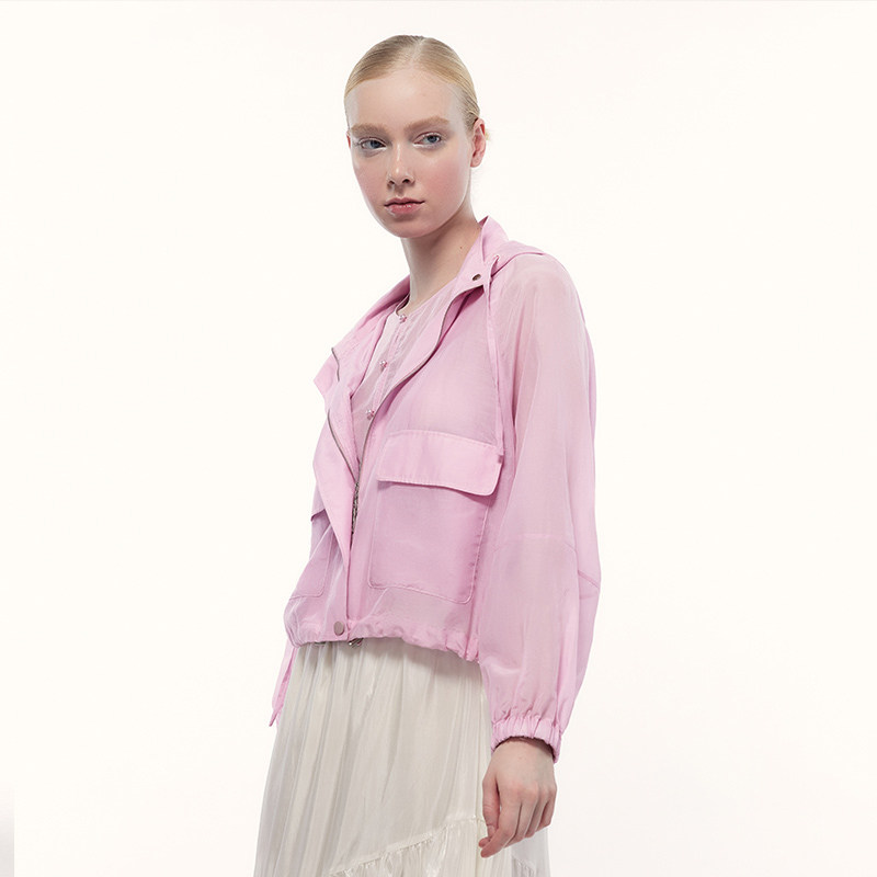 艺之卉出游钜惠户外穿搭浪漫防晒连帽拼接短外套女粉色上衣