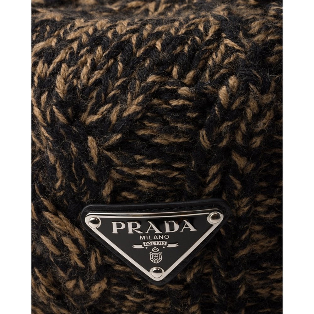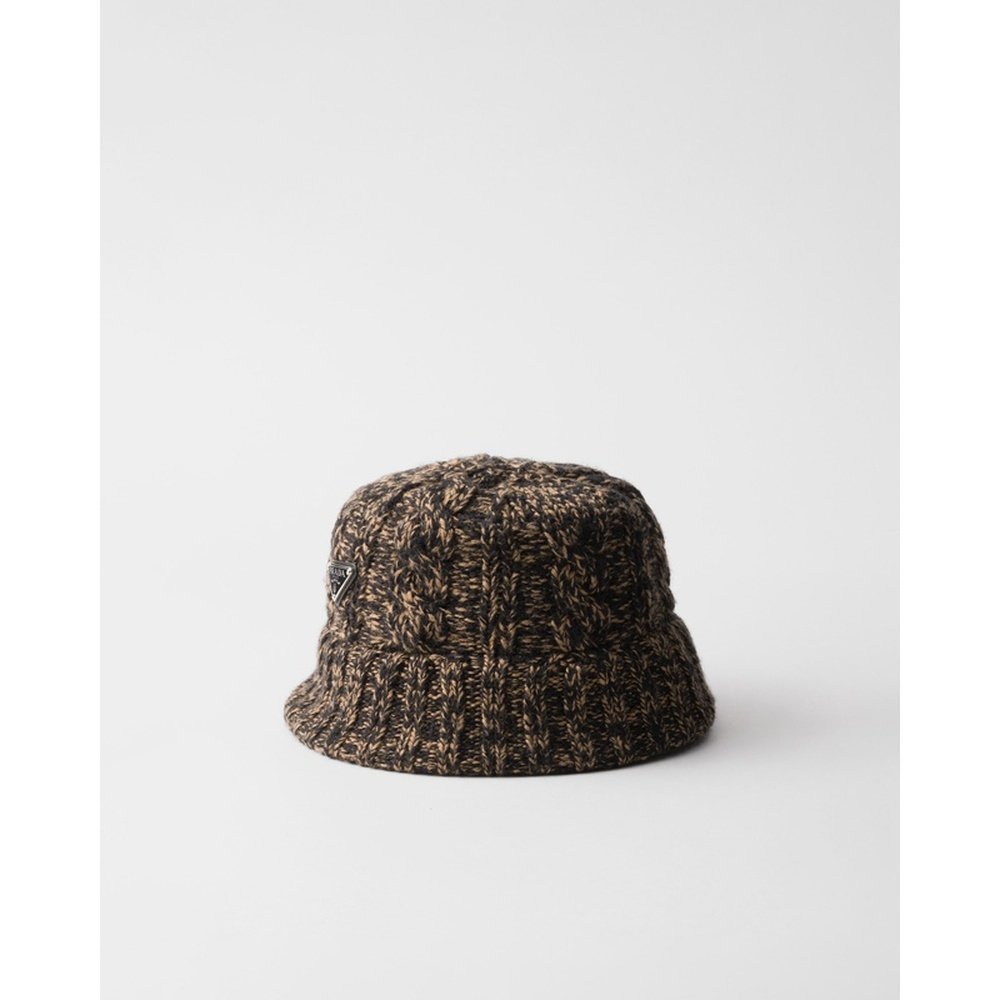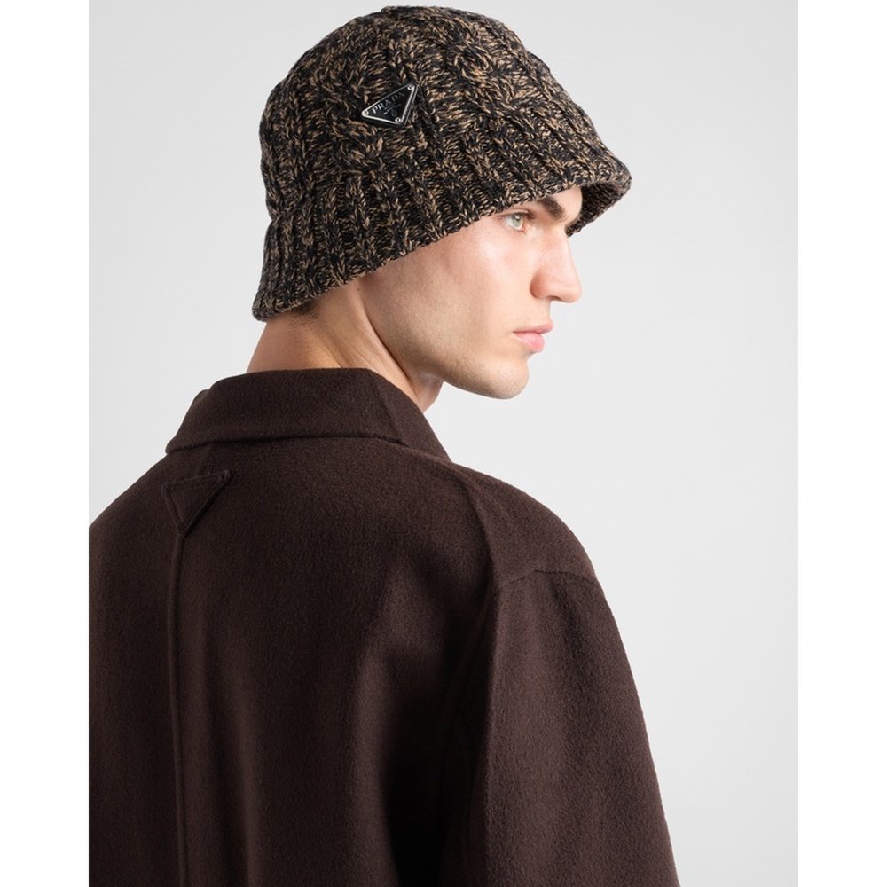 自营欧洲直邮Prada普拉达 男士黑色棉金属三角标识圆顶帽子礼帽