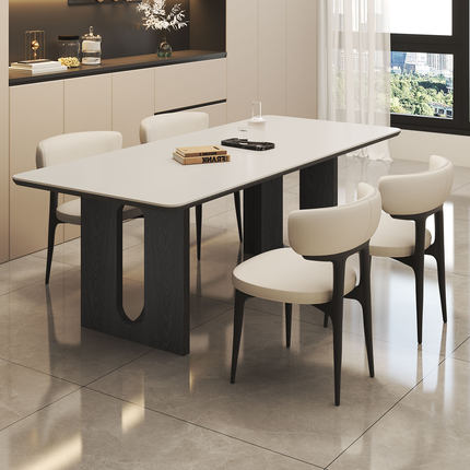政府补贴复古风实木岩板餐桌椅子组合意式极简家用长方形吃饭桌子