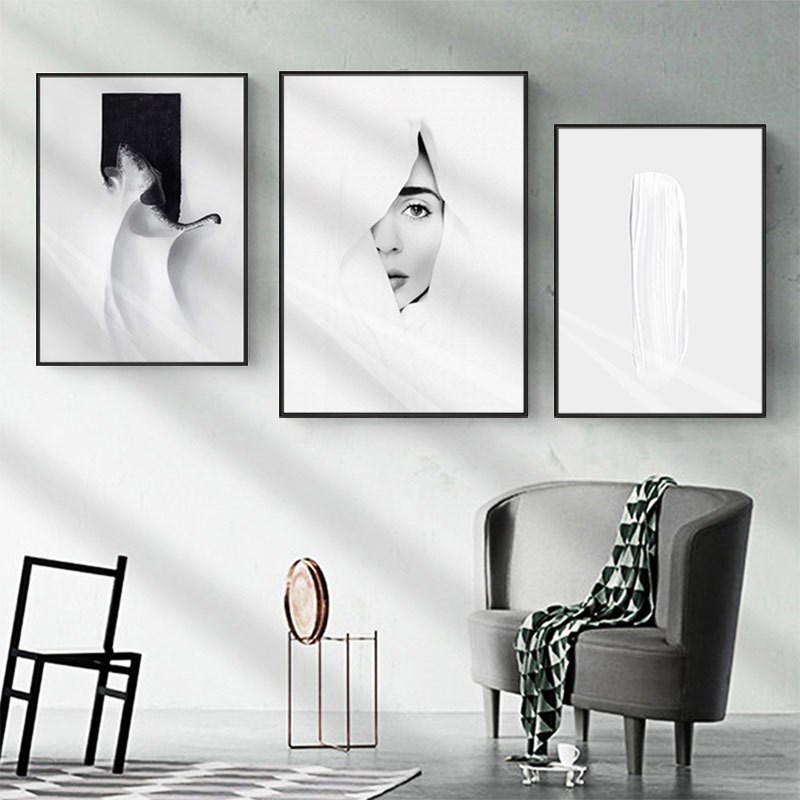 现代简约抽象装饰画小众艺术软装办公室黑白简约壁画客厅玄关挂画