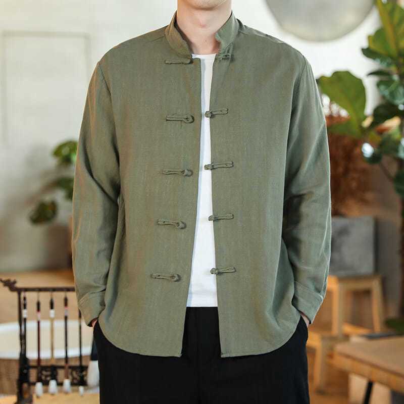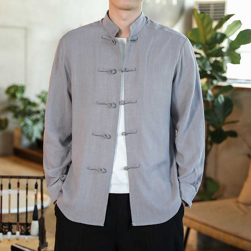 清仓中式秋季盘扣唐装衬衫复古休闲大码居士服长袖中国风男装