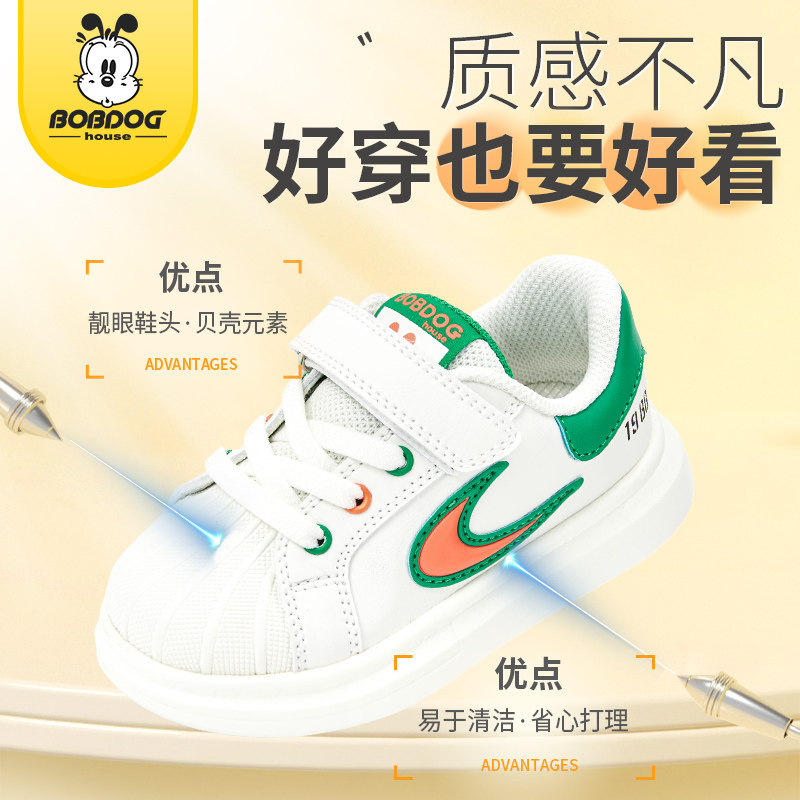 巴布豆童鞋儿童防水小白鞋男童春秋板鞋女童小童运动鞋幼儿园鞋子