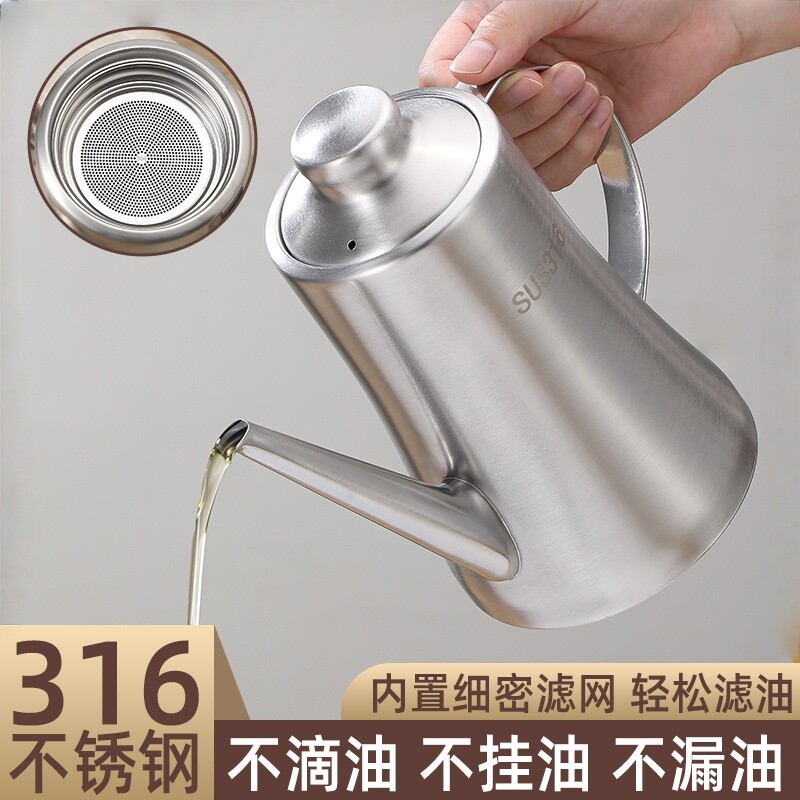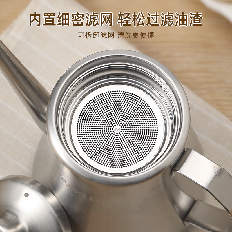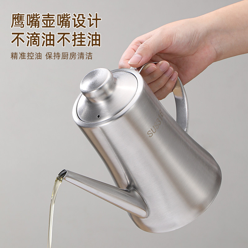 迈圣316厨房不锈钢鹰嘴油壶防挂油 小号家用调料壶长嘴酱油瓶醋瓶