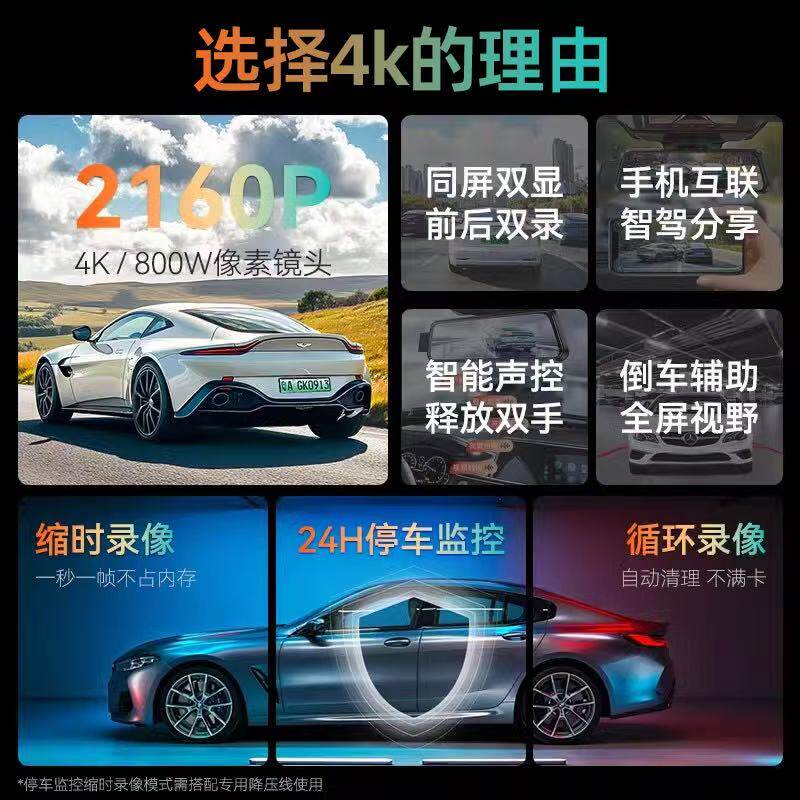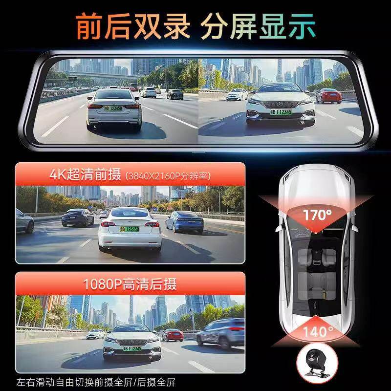 行车记录仪高清前后双摄流媒体后视镜免走线倒车影像2026新款全屏