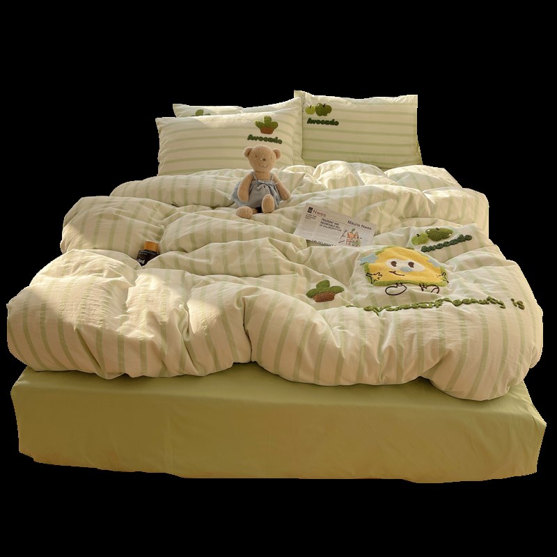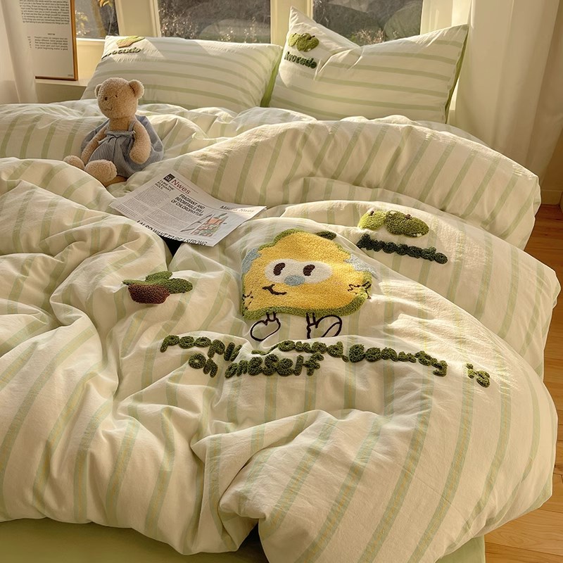 A类卡通毛巾绣纯棉水洗棉四件套韩系全棉可爱被套U学生三件套床单