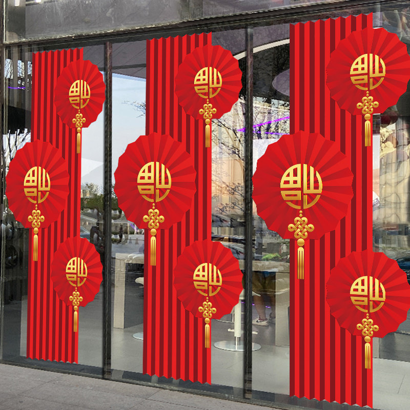 2026马年新款红色喜庆新年玻璃贴纸酒店店铺公司春节装饰布置窗花